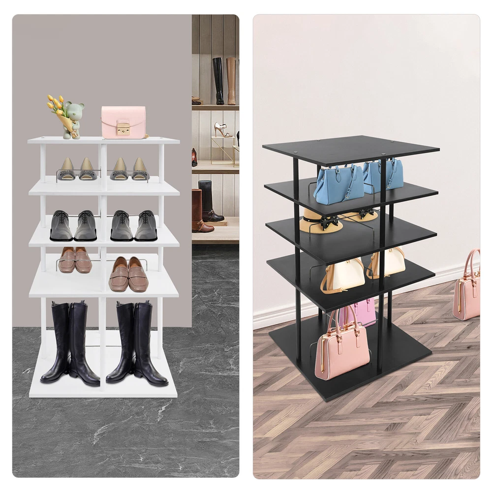 Description A good shoe rack is not only a thoughtful steward of your shoes, but also an artistic accent to your home life. Our shoe storage rack is designed to hold shoes, hats or other items in an organized manner. It is made of high-class paintless board and metal with spray coating and baking paint processes, which is not only beautiful but also can be used for a long time. It can help you organize various kinds of shoes and solve storage problems in small homes. Key Features Build to Last: It is made of high-class paintless board and metal with spray coating and baking paint processes, which makes it wear-resistant, environmentally friendly, and not easy to deform, so you can use it for years and years. Large Capacity: The 4-tier design, each tier can accommodate 4 pairs of regular 4-Tier Shoe Storage Rack 360° Rotating Shoes Shelf Organizer Shoe Display Rack Description A good shoe rack is not only a thoughtful steward of your shoes, but also an artistic accent to your home life. Our shoe storage rack is designed to hold shoes, hats or other items in an organized manner. It is made of high-class paintless board and metal with spray coating and baking paint processes, which is not only beautiful but also can be used for a long time. It can help you organize various kinds of shoes and solve storage problems in small homes. Key Features Build to Last: It is made of high-class paintless board and metal with spray coating and baking paint processes, which makes it wear-resistant, environmentally friendly, and not easy to deform, so you can use it for years and years. Large Capacity: The 4-tier design, each tier can accommodate 4 pairs of regular shoes(for reference), makes this product spacious enough for a family's shoe storage needs. You can also place small potted plants, handbags, umbrellas, etc.(not included) on the top tier. Strong Load-bearing Capacity: The square base and the solid connection between the parts allow this product to hold up to 38.58 lbs, so you can use it to store shoes or bags (not included) with confidence. Display Assistant: With it, you can neatly arrange different types of shoes. The 8.26-inch and 17.32-inch tier spacing accommodates different heights of shoes such as trainers and tall boots. In addition, the bottom of this shoe rack can be rotated 360° for easy selection, access, and storage of shoes or other items. Thoughtful Design: The open design allows you to see your shoes at a glance for easy access while still allowing for effective ventilation. Elegant Appearance: The simple black/white color finish creates a touch of elegance and casualness. It blends well with a variety of interior styles, bringing functionality and aesthetics to your space. Space Saving: It utilizes vertical space wisely and has a small footprint(22.44*22.44 inches), which won't make the room congested. Simple Cleaning: Thanks to its smooth surface and simple structure, you can easily clean it with a soft rag (not included). Ideal Gift : This quality and practical product is a nice housewarming gift for your family and friends. Buy with Confidence: We stand behind all our guests and look forward to assisting you with your purchase. It is our pleasure to answer your confusion and questions. The end of the story between us is not "we sell and you buy". Details Stable Base: The square base measuring 22.44*22.44 inches and with non-slip feet can effectively stabilize the product and prevent it from shaking. Center Crossbars: They can be good for dividing up placed items and making them neater. Smooth Edges: The rounded and smooth edges not only add to the aesthetics of the product but also improve the safety of use. Application It can be used in homes, stores, clothing stores, hotels, gift stores, or factory warehouses to hold various styles of shoes, hats, handbags, and so on. Specifications Color: Black/White Material: Paintless Board, Metal Process: Spray Coating, Baking Paint Style: Modern Shape: Rectangular Assembly Required: Yes Mount Type: Floor Mount Feature: 360° Rotatable Product Care Instructions: Wipe with a Soft Cloth Number of Tiers: 4 Number of Shoes Applicable Each Tier: 4 Pairs(For Reference) Total Load-bearing Capacity: About 17.5kg/38.58lbs Gross Weight: 15kg/33.07lbs Net Weight: 14.25kg/31.41lbs Tier Spacing: 21cm/8.26in, 44cm/17.32in Product Size: 57*57*107cm/22.44*22.44*42.1in Package Size: 60*60*20cm/23.62*23.62*7.87in Package Included 1* Shoe Storage Rack All Accessories for Assembly Notes Please confirm the product size before purchasing. Please note that this product does not include display items such as shoes. Please note that the number of shoes that can be stored will vary depending on the size and height of the shoes. Please allow the slight color difference caused by the shooting light and 1-3cm error due to manual measurement, and make sure you do not mind before you order. Payment Delivery details Terms of sales About us Contact us Payment We accept ebay payment 。 Fees such as import duties, taxes are not included in the item price or shipping costs. These charges are the buyer's responsibility. Delivery details Shipping: 2-9 working days to: USA Terms of sales We maintain high standards of excellence and strive for hundred percent customer satisfaction. Feedback is very important to us. We hope that you contact us immediately before you give neutral or negative feedback, so that we can address your concerns. It is impossible to address issues if we do not know about them! About us Your satis faction is our ultimate goal. We work hard to earn your trust and future business. Our certified technicians have tested each item before shipping. The unit comes with 1 year limited warranty on all manufacturing defects. a) If you receive a defective item, you may return it or ask for a discount. Please contact us within 14 days after you receive the package. b) What you returned must be intact and in its original packaging as re? u. Customer is responsib