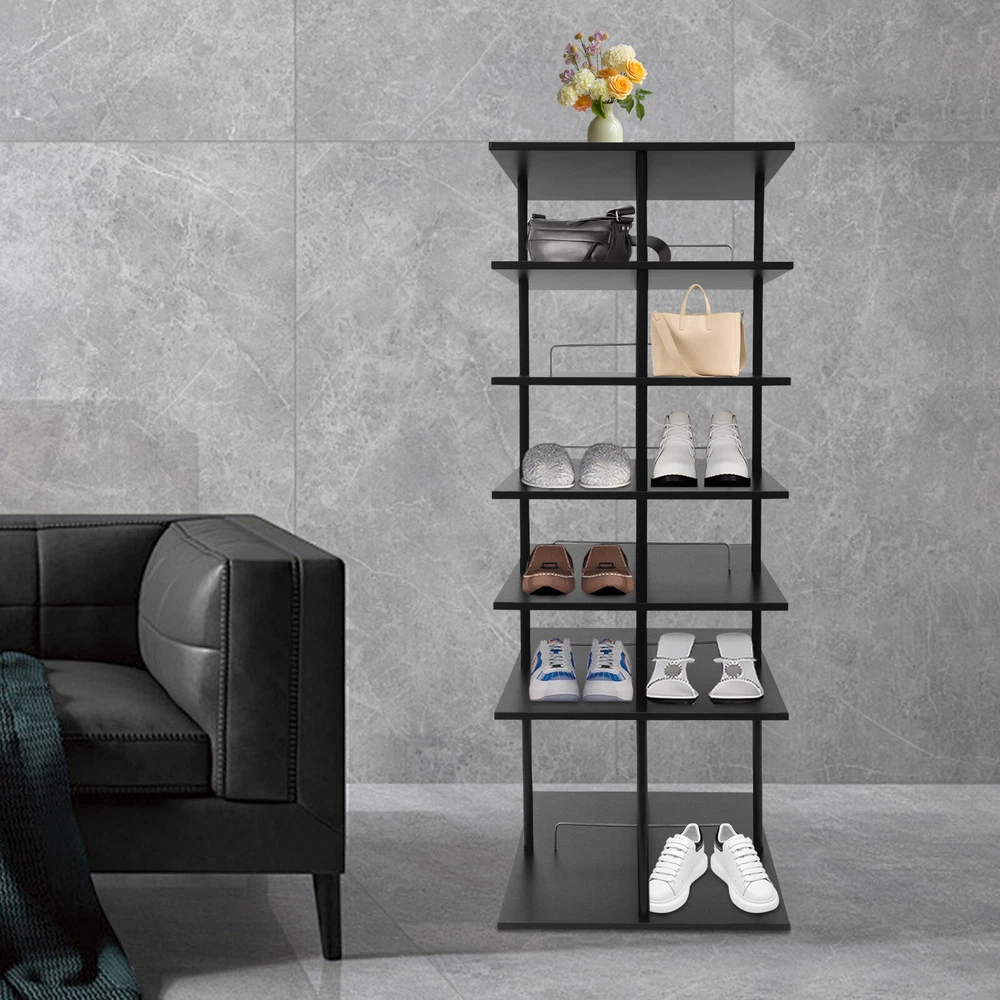 This rotating shoe rack is a game-changer for keeping my collection organized! The 360° spin makes it super easy to find any pair, and the sturdy metal frame holds up to 6 tiers of shoes without wobbling. Assembly was straightforward, and the sleek black design fits perfectly in my modern bedroom. Love that it holds 24 pairs while taking up minimal floor space - definitely worth it for shoe lovers!