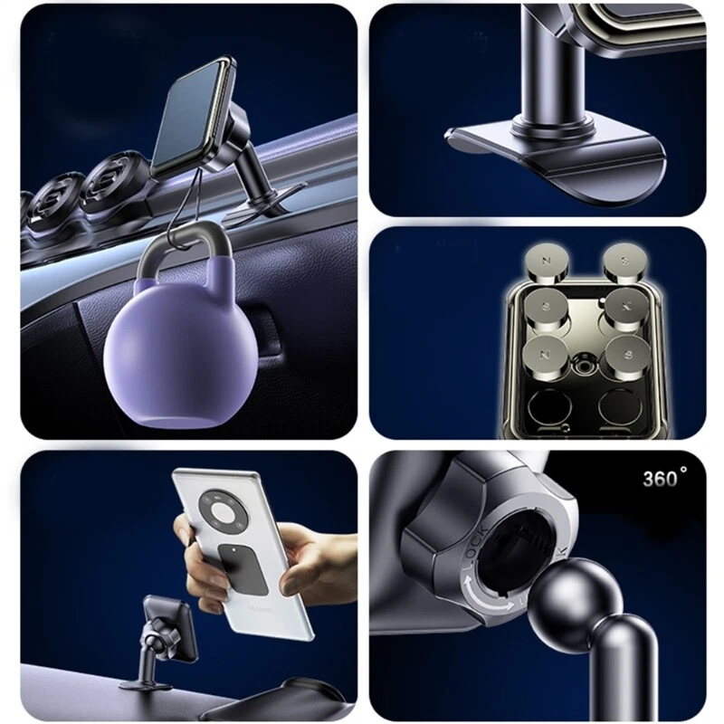 Stand 360 Degree Rotating Adjustable Phone Holder Cellphone Mount Stand Features: stability with the Phone Car Mount. This car phone holder magnet to accommodate various smartphone, offering a 360 degree rotation for viewing and a sleek, space saving that will not obstruct your dashboard. For busy commuters, ride share driver, and trip enthusiasts who need quick, handed access to their phones while keep their eyes on road. User friendly, the mount is for both car dashboards and home use, providing a secure grip for device wherever you are. With its easy installation grip, the mount ensures device stays in place during sudden stops or making every journey safe and more convenient. Specifications: PC, Silicone Size: About. 5.5x4.1cm/2.17x1.61in Package Includes: 1pc Phone Holder note: Please allow 1-2cm errors due to manual measurement. Due to difference between different monitors, the picture may not reflect the item actual color.