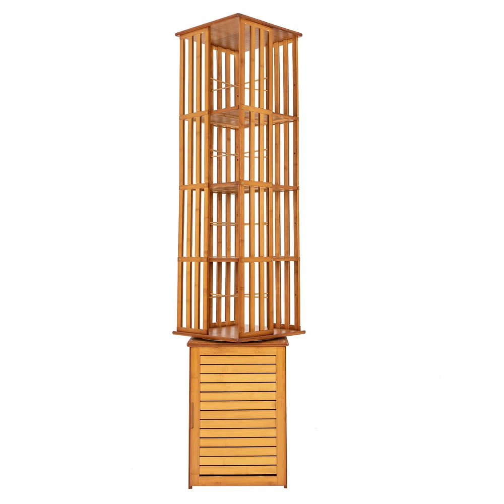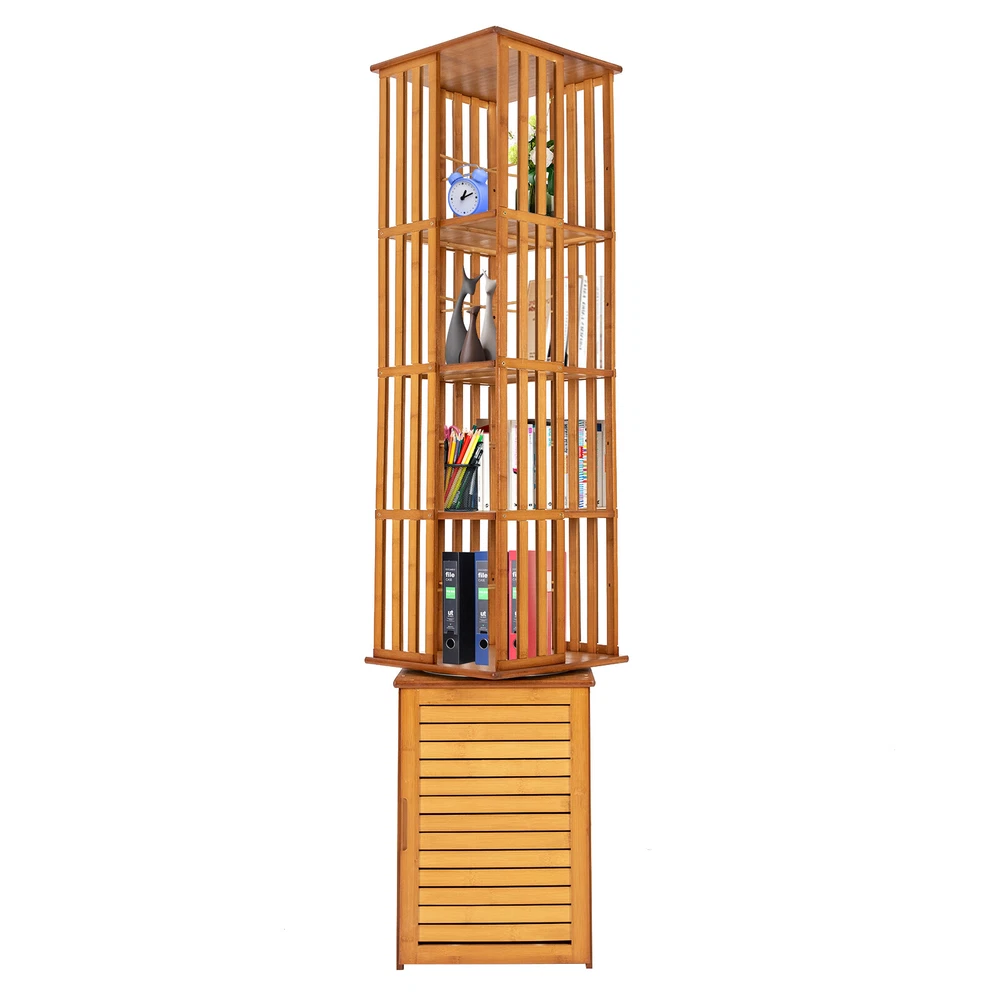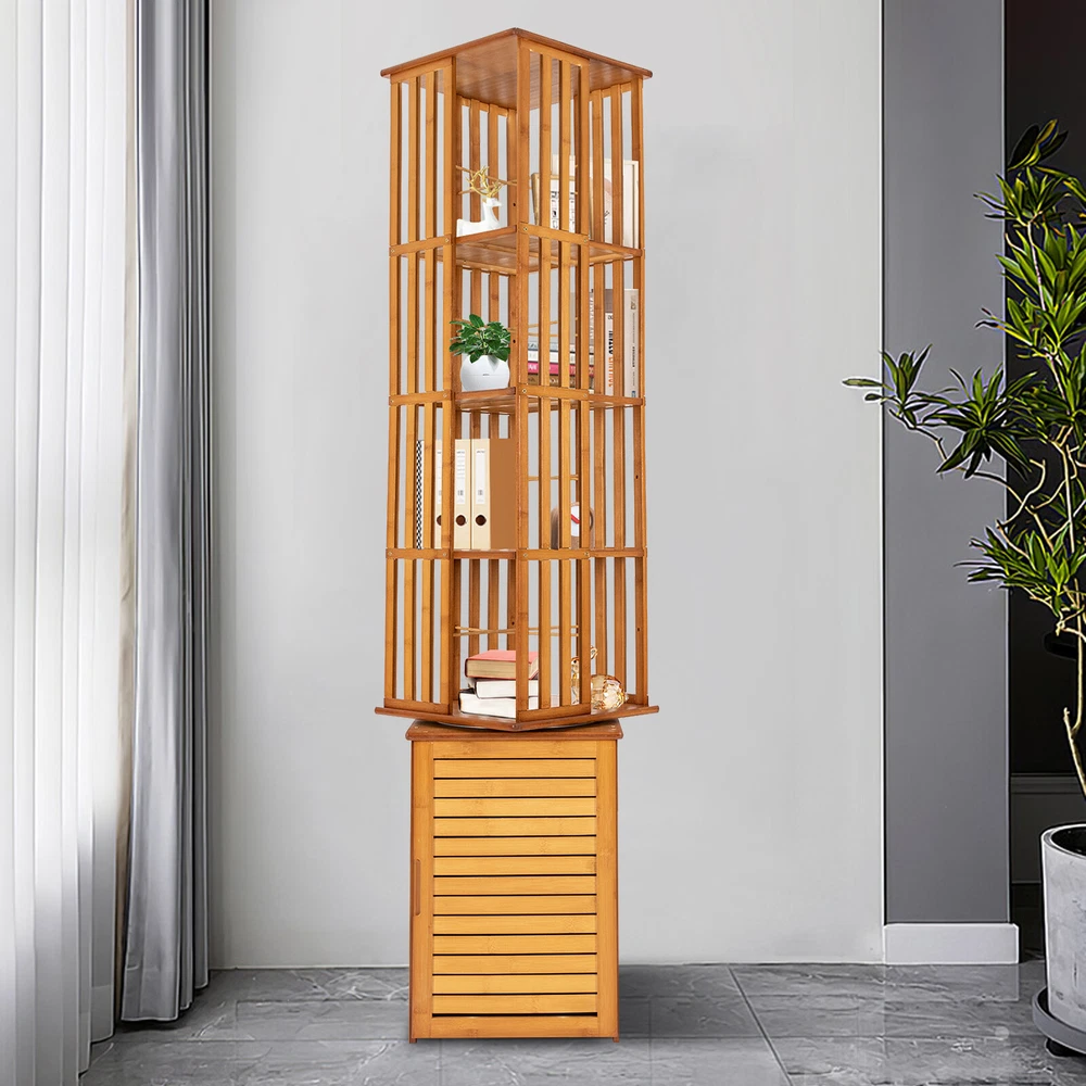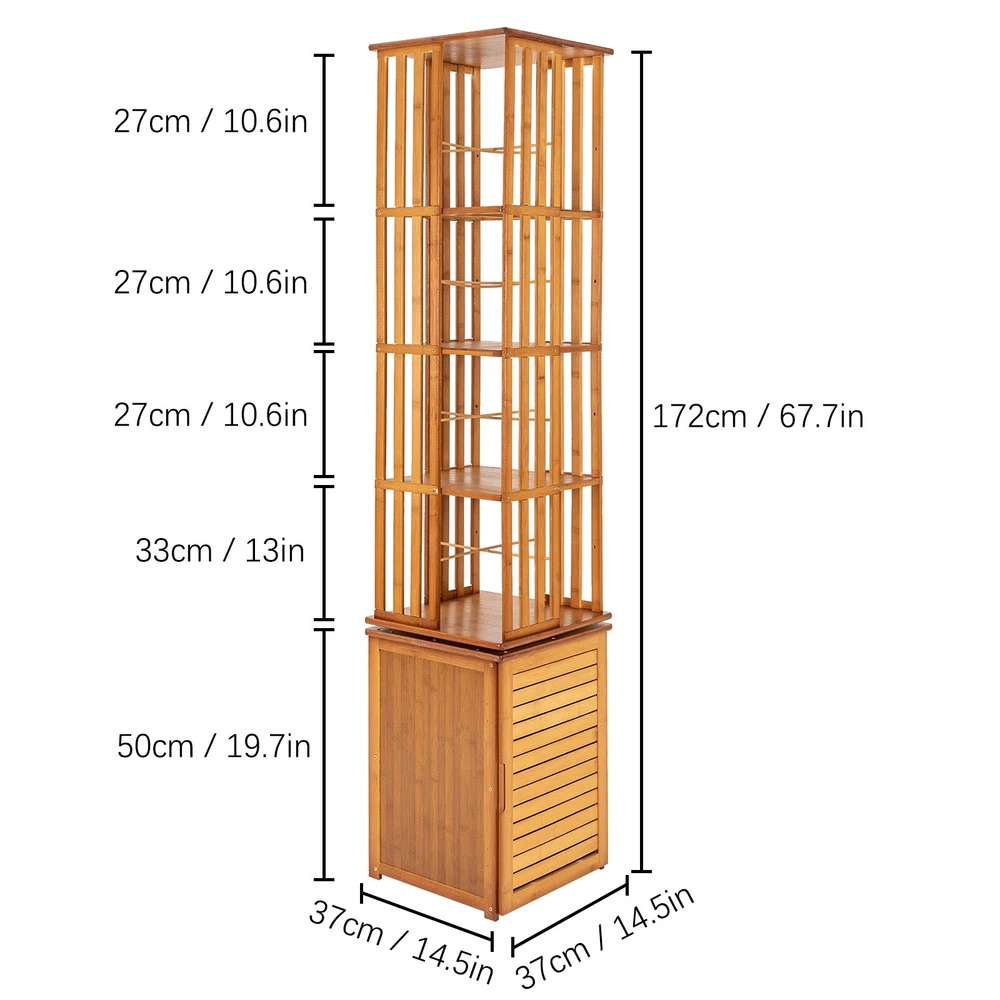 360° Rotating Bookshelf Wood Bookcase Storage Shelf Freestanding Display Rack Description This 360° rotatable bookshelf has a total of six tiers, which can ensure a large storage space and bamboo material makes it highly load-bearing. The rotatable design is convenient for you to pick up items. The simple yet practical shape makes it extremely space efficient, and you can freely assemble it according to your own preferences and needs. Key Features High-quality Material: This bookcase is mad e of bamboo and density board with varnished and paint processes, which is not easily deformed or cracked, and is very environmentally friendly , strong, and durable. Rotatable Design: The 360 ° rotatable design makes all corners within reach, and facilitates access while allowing you to take advantage of each available storage space. Micro Library: With 6 tier shelf design, an open top shelf, and appropriate tier spacing(13.6in/10.6in), this bookshelf is perfect for displaying and organizing about 300 books in different heights, toys, photo albums, plants, and life supplies. The bottom compartment can accommodate some privacy items . Small Footprint : This bookshelf makes efficient use of vertical space to store and organize items. You can build a book world in a small corner of your home or balcony. Strong Load-bearing: This bookshelf uses thick density boards, with each layer bearing up to 22.05 lbs, so you can place most books and other items at ease. Shutter Door Design: Each compartment of the bookshelf is equipped with louvered doors. This design allows you to see at a glance the storage inside the bookshelf, but also all-around dust and moisture resistance . And it will form a beautiful shape on the wall or the ground when rotating the shelf under the light or sunlight, adding a sense of fashion and warm atmosphere to your home. Easy to Install: We provide all the assembly accessories for this item, you just need to follow the detailed image-text instruction to complete the installation. Multifunctional: This bookshelf can be used to be a display rack, or storage organizer in your living room, balcony, office, sitting room, corridor, or any other corner, by displaying books, family photos, toys, CDs, handicrafts, and utensils. Details Rounded Corners: In order to ensure the safety during installation and use, all of the bookcase corners are rounded, which not only enhances the overall aesthetic, but also avoids unnecessary collision. Blocking Strips: They can prevent books from falling and allow for classified storage. Foot Pads: The four rubber foot pads reduce noise when moving the product, but also keep it in place . Enlarged Chassis Steel Ring: The painted steel ring is wear-resistant and not prone to rust, ensuring stable and smooth rotation . Application It can be used to be a display rack, storage organizer in your living room, balcony, office, sitting room, corridor or any other corner, by displaying books, family photos, toys, CDs, handicrafts, utensils. Specifications Material:Bamboo, Density Board, Steel, and Plastic Rubber Color: Brown Swivel: 360 Degrees Finish: Varnished and Paint Treatment Pattern: Fence Style: Modern Mounting Type: Freestanding Special Feature: Waterproof , Durable Assembly Required: Yes Room Type: Family Room, Living Room, Home Office, Library Shelf Type: Bamboo Number of Shelves: 6 Recommended Uses For Product: Indoor Shape: Rectangular Each Tier Load Bearing Capacity: About 10kg/22.05lbs Overall Size: 37*37*222cm / 14.5*14.5*87.4in Bottom Cabinet Height: 50cm / 19.7in Bottom Louvered Cabinet Layer Height: 33cm / 13in Upper Louvered Cabinet Floor Height: 27cm / 10.6in Total Height of Louvered Cabinet: 172cm / 67.7in Footprint: 0.14m² / 1.5ft² Package Included 1x Rotating Bookshelf All Accessories for Assembly Notes Children are forbidden to play and climb. Put the screws in loosely until all pieces are together and then tighten them all. It will save you time if you make a mistake when installing. Please allow the slight color difference caused by the shooting light and 1-3cm error due to manual measurement, and make sure you do not mind before you order. Payment Delivery details Terms of sales About us Contact us Payment We accept ebay payment 。 Fees such as import duties, taxes are not included in the item price or shipping costs. These charges are the buyer's responsibility. Delivery details Shipping: 2-9 working days to: USA Terms of sales We maintain high standards of excellence and strive for hundred percent customer satisfaction. Feedback is very important to us. We hope that you contact us immediately before you give neutral or negative feedback, so that we can address your concerns. It is impossible to address issues if we do not know about them! About us Your satis faction is our ultimate goal. We work hard to earn your trust and future business. Our certified technicians have tested each item before shipping. The unit comes with 1 year limited warranty on all manufacturing defects. a) If you receive a defective item, you may return it or ask for a discount. Please contact us within 14 days after you receive the package. b) What you returned must be intact and in its original packaging as re? u. Customer is responsible for shipping costs of the returned item. c) We will cover the cost of shipping back t with the shipping rate indicated in the registration page. We will send you a new unit or refund the full payment you paid. Thank you. Contact us Business Hour Business Hour: Monday To Friday: 8:30 AM to 5:00 PM (Beijing China time) Due to time zones, our reply to your questions may not be immediately. But within above working time, we will reply your email within 24 hours. If it's non-workdays, please kindly be patient and wait till Monday. Please contact us with ebay message. Please feel free to contact us if you have any questions. Monday To Friday: 8:30 AM to 5:00 PM (Beijing China time) Due to time zones, our reply to your questions may n