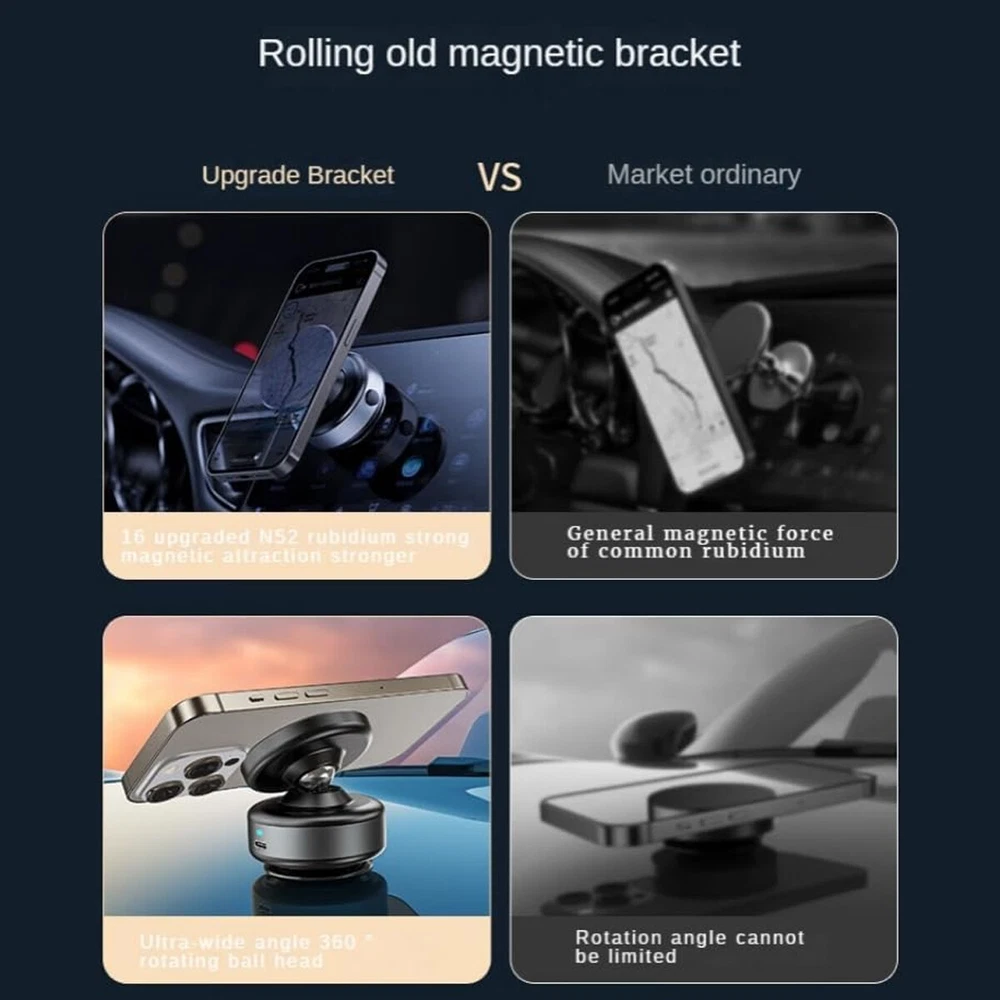 Magnetic Car Suction Cup Holder,Vacuum Glass Mirror Adsorption Magnetic Suction Cup car Phone Mount,360° Rotation Portable Magnetic Phone Holder for Windshield Dashboard Features: 【Magnetic Suction Holder】Our Magnetic Car Suction Cup Holder features a ring-shaped metal panel with 32 N52 rubidium magnets, providing the highest magnetic strength in the industry. 【360 Degree Rotation】In order to provide a better viewing angle, the suction cup mount has a 360-degree swivel function that allows users to adjust the direction and angle of the phone. 【Easy to Install】The Magnetic Car Suction Cup Holder is designed to be easy to install. It features a suction cup that easily attaches to any smooth surface, such as a car window or dashboard, glass, smooth tiles, easy to install, no tools required. 【Universal Mobile Phone Holder】 The Phone Holder is universal and suitable for various brands and models of smartphones. The magnetic adsorption function of the mount makes it widely compatible, so users don't need to worry about whether their phones are suitable or not.