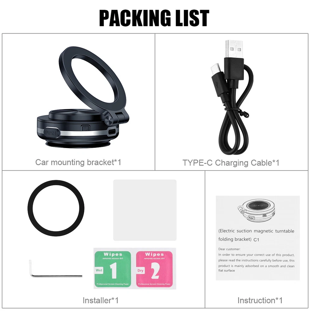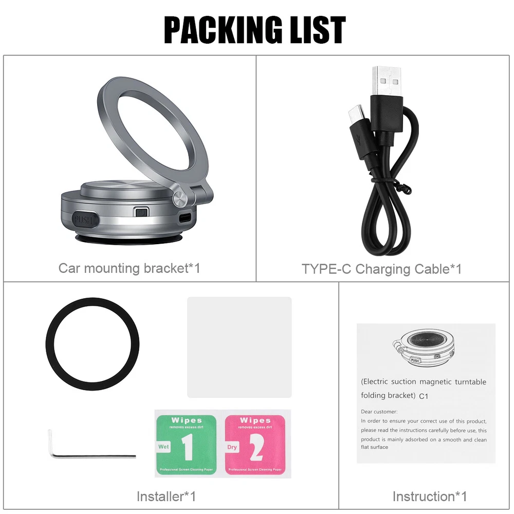 You may also like 2024 Motorcycle Cell Phone Mount Holder Wireless USB Charger 15W Fast Charging_ 33.49 USD Free shipping TELESIN Magnetic Neck for GoPro Hero 5 6 7 8 9 10 Hold Mount Quick Release Mount 22.18 USD Free shipping Product Description 360° Rotation Phone Holder Vacuum Magnetic Suction Car Phone Mount Silver&Black. ⭐Function: 【 Magnetic Suction Holder 】 Our Magnetic Car Suction Cup Holder features a ring-shaped metal panel with 32 N52 rubidium magnets, providing the highest magnetic strength in the industry. 【360 Degree Rotation】 In order to provide a better viewing angle, the suction cup mount has a 360-degree swivel function that allows users to adjust the direction and angle of the phone. 【Easy to Install】 The Magnetic Car Suction Cup Holder is designed to be easy to install. It features a suction cup that easily attaches to any smooth surface, such as a car window or dashboard, glass, smooth tiles, easy to install, no tools required. 【Universal Mobile Phone Holder】 The Phone Holder is universal and suitable for various brands and models of smartphones. The magnetic adsorption function of the mount makes it widely compatible, so users don't need to worry about whether their phones are suitable or not. ⚙Parameters: Product Name: Electric Magnetic Disc Folding Stand Product Material: ABS+PC+Aluminum Alloy Product Color: Dark Black+Space Gray Applicable Models: Smartphones Over 4.7 Inches In Size Size: 65mm * 58mm * 25mm Installation Method: Suction Cup Type 🎁Packing list: Magnetic Bracket*1 Payment We accept PayPal only. If buyer want to delay the payment because of financial problem, please contact me by the ebay message within 3 days Payment via PayPal (PayPal accepts all major credits/debit cards and eCheque) ECheque payment will tak e 3-10 days to get clear, thus DELAYing the shipment. Shipping Handling time: 1 business day (Orders are not processed on weekends & holidays) Tracking information will be sent once item is shipped. Local pick-up is unavailable at the moment. For international shipping and shipping to Guam, Hawaii and Alaska, Please contact us before placing the order. Item is shipped to ebay address. Leaving correct address can minimize delay. Terms For any issues with Defects, Return, Item Exchange request, please contact us first and send us a message first before opening any type of case or request. We devote ourselves making EVERY CUSTOMER in 100% Satisfactory and resolve any problem. We highly value and appreciate your business. Thank you. No returns will be accepted without an RMA number. Please contact us for the RMA number. Return is acceptable within 30 days of delivery. Return for replacement or money back is optional. Returned items must be in the brand new, unaltered and resalable condition. Seller is not responsible for any labor cost, expense in a dealer store, or damage due to wrong installation. Returns Return is accepted within 14 days after the buyer's receiving the item. (Excluding contrived damagement or misusage).100% money-back Guaranteed! All product will be tested in 100% before delivery.If the item is defected by the processing of postage,Buyer has up to 14 days from date of receipt for exchange of a new one.All shipping charges for returned products are to be paid by the buyer,Please contact us for the return address Contact Us All messages will be answered within 24 office hours. Please contact us either by clicking "contact seller" in the "purchase history" section or simply click "ask a question" at the bottom of this page. If you are unsatisfied with our item or service, please contact us before leaving any feedback. We are committed to resolve all issues in a friendly and satisfactory manner. We always reply to messages within 2 business days (off-duty at weekend). If you do not get a response from us, then please check your junk or spam mailbox. powered by