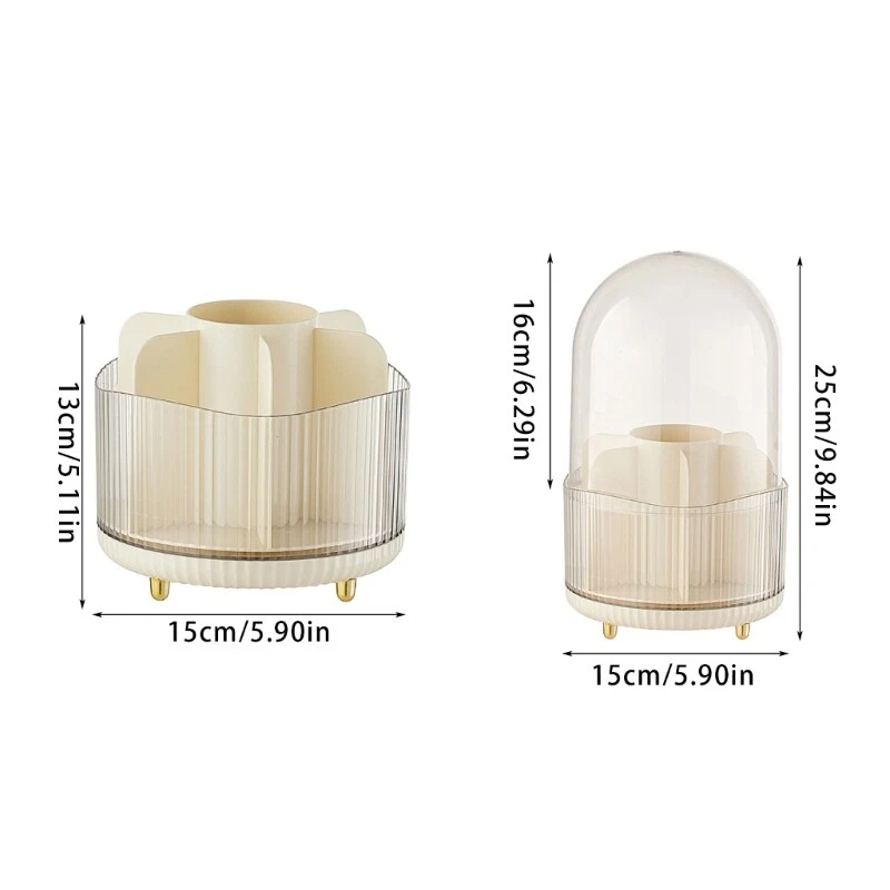 Features: and high Keep your makeup brushes organized and easily accessible with this rotating makeup brush storage bucket. Featuring a unique rotating mechanism and a cream color front, this makeup brush storage bucket is both practical and delicate. Suitable for makeup enthusiasts, beauty professionals, and makeup students, this makeup brush storage bucket is for anyone who loves makeup. Whether it is in bathroom, beauty studio, or makeup classroom, this makeup brush storage bucket is for keep your brushes within reach. Say goodbye to mess countertops and hello to organized and convenient makeup routine with this functional makeup brush storage bucket. Specifications: Component:PET Type: Makeup Brush Storage Bucket without Lid/ Makeup Brush Storage Bucket with Lid Color:Ice Cream Color/Orange/Green Makeup Brush Storage Bucket without Lid Size:Approx.15x13cm/5.9x5.11inches Makeup Brush Storage Bucket with Lid Size:Approx.15x25cm/5.9x9.84inches Package Includes: 1Piece Rotable Makeup Brush Storage Bucket note: Please allow 1-2cm error due to manual measurement. Please make sure you will not mind before you bid. Due to the differences between different monitors, the picture may not reflect the actual color of the item. Thanks!