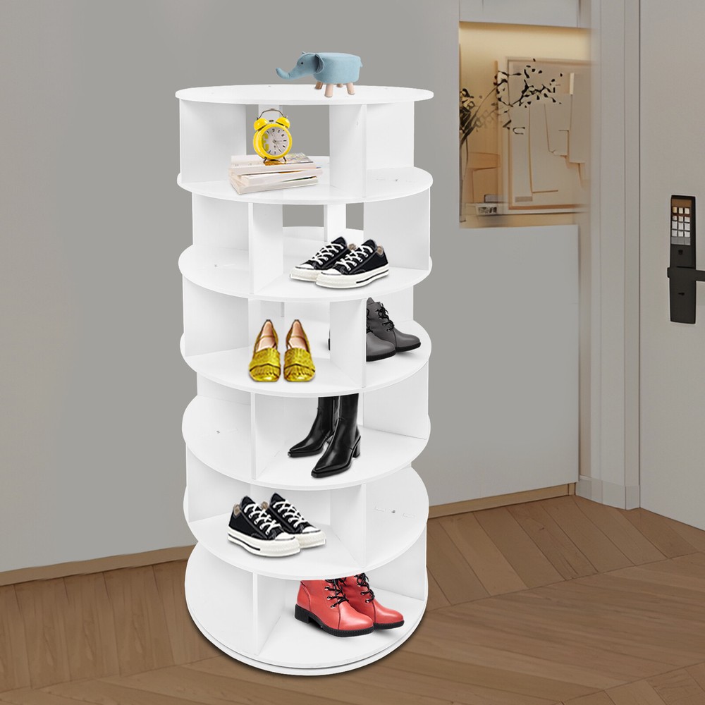 Rotating Shoe Rack, Storage Spinning Shoe Rack Tower, Free Standing 360?? Description Are you still struggling with shoe storage? Then please take a look at our product. Our rotating shoe rack is a home storage solution that combines rotation with elegant design. With a simple structure and smooth surface, it is easy to install, clean, and use. It can provide you with a more comfortable and neater home. Key Features Last and Durable: It is mainly made of high-class PVC, which makes this item environmentally friendly , wear-resistant , and impact-resistant , so it can provide good performance for a long time. Thoughtful Design: The six-tier design makes it easy for you to categorize various shoes or books, and the top platform can hold potted plants, keys, and other items for easy access, making your home look neater. In addition, the 360° rotating design can showcase your shoes well, while the open design helps you place your shoes and promotes air circulation to prevent them from getting damp. Excellent Load Capacity: Sturdy construction and premium material allow it to hold up to 110 lbs, so you can use it to place your shoes with confidence. Neat Lifestyle: This shoe rack cleverly integrates shoe storage into life, placing it at the doorway to put away messy shoes, making it pleasing to the eyes as soon as you open the door, bringing you a neat lifestyle. Easy to Clean: With its smooth surface and simple construction, you can wipe its surface clean with a damp rag (not included). Space-saving: With its compact footprint(23.6 inches in diameter) and multi-tier design, you can place it in an entryway or doorway without taking up too much space. Simple Installation: With complete accessories, a simple structure, and an English installation manual you can do the installation yourself and enjoy the process. Ideal Gift: Thanks to its beautiful appearance and functionality, you can give it to your friends as a housewarming, Christmas, or Thanksgiving gift! Details Round Edges: Smooth, burr-free edges are comfortable to touch and enhance the safety of use. Mortise and Tenon Joint: It utilizes mortise and tenon joints to facilitate quick installation while ensuring stability . Practical Sandpaper: It can help you polish the edges and corners of the product, making it feel more comfortable to touch. Application It can accommodate various types of shoes, including shoes, high heels, sports shoes, etc. In addition, storage or display racks for daily necessities such as CDs, books, photo albums, plants, towels, small appliances, etc. can also be used. It is suitable for places such as doorways, bedrooms, dormitories, apartments, living rooms, etc. Payment Delivery details Terms of sales About us Contact us Payment We accept ebay payment 。 Fees such as import duties, taxes are not included in the item price or shipping costs. These charges are the buyer's responsibility. Delivery details Shipping: 2-9 working days to: USA Terms of sales We maintain high standards of excellence and strive for hundred percent customer satisfaction. Feedback is very important to us. We hope that you contact us immediately before you give neutral or negative feedback, so that we can address your concerns. It is impossible to address issues if we do not know about them! About us Your satis faction is our ultimate goal. We work hard to earn your trust and future business. Our certified technicians have tested each item before shipping. The unit comes with 1 year limited warranty on all manufacturing defects. a) If you receive a defective item, you may return it or ask for a discount. Please contact us within 14 days after you receive the package. b) What you returned must be intact and in its original packaging as re? u. Customer is responsible for shipping costs of the returned item. c) We will cover the cost of shipping back t with the shipping rate indicated in the registration page. We will send you a new unit or refund the full payment you paid. Thank you. Contact us Business Hour Business Hour: Monday To Friday: 8:30 AM to 5:00 PM (Beijing China time) Due to time zones, our reply to your questions may not be immediately. But within above working time, we will reply your email within 24 hours. If it's non-workdays, please kindly be patient and wait till Monday. Please contact us with ebay message. Please feel free to contact us if you have any questions. Monday To Friday: 8:30 AM to 5:00 PM (Beijing China time) Due to time zones, our reply to your questions may not be immediately. But within above working time, we will reply your email within 24 hours. If it's non-workdays, please kindly be patient and wait till Monday. Please contact us with ebay message. Please feel free to contact us if you have any questions. * Feature * Fast shipping from US Warehouse Brand Unbranded Material PVC Color White Style Modern Shape Column Mounting Type Floor Standing Assembly Required Yes Number of Tiers 6 Rotation 360° Product Size(D*H) 60*121cm/23.6*47.6 in Each Tier Spacing 18cm/7.2 in Package Size 65*65*16cm/25.59*25.59*6.3 in Total Load Capacity About 50kg/110 lbs Gross Weight 16kg/35.27lbs Net Weight 15.2kg/33.5lbs Item Height 24 in Item Length More Than 45 in Type Shoe Cabinet Item Width 8 in