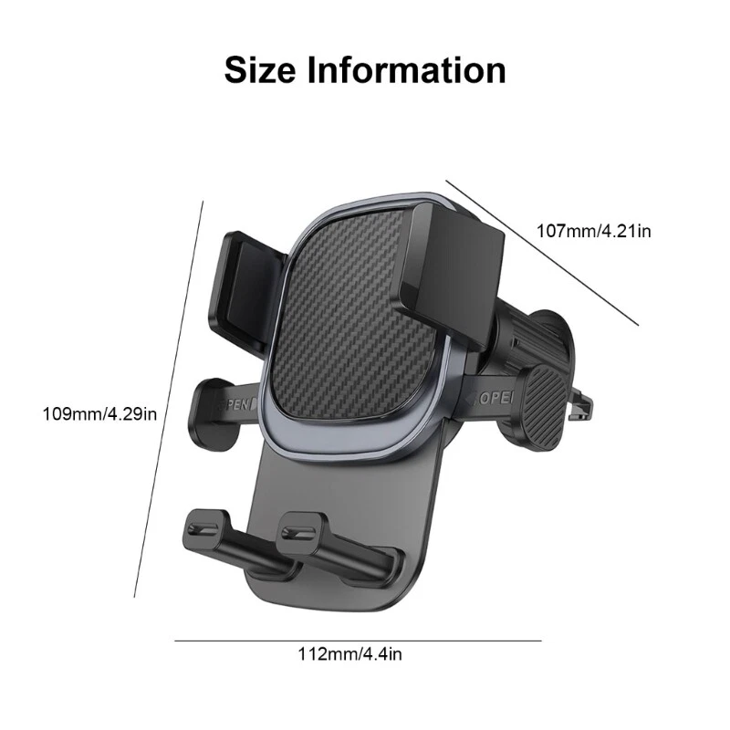 Car Phone Mount Holder for Air Vent Universally 360Rotation Car Mobile Holder Features: This car phone holder with hook clip can secure attach to the air vent. And holds your phone tightly even on turnings, roads with potholes, and bumping roads. Press the releases button on the side to open the clamp arms, place your phone and squeeze the clamp arms to lock, easy to insert and remove your phone with a single hand while the holder provides a firm grips on your phone. Our phone car mount never falling offs, break or slide, and will not interfere with the airflows from the vents. Our phone mount for car allows for effortless one-handed operating. It can be easily installed or removed within second. Suitable for 4.7-7inch width from 65mm to 85mm mobile devices. Specifications: ABS Package Includes: 1Piece Car Phone Holder note: Please allow 1mm errors due to manual measurement. Due to the differences between different monitors, the picture may not reflect the actual color.