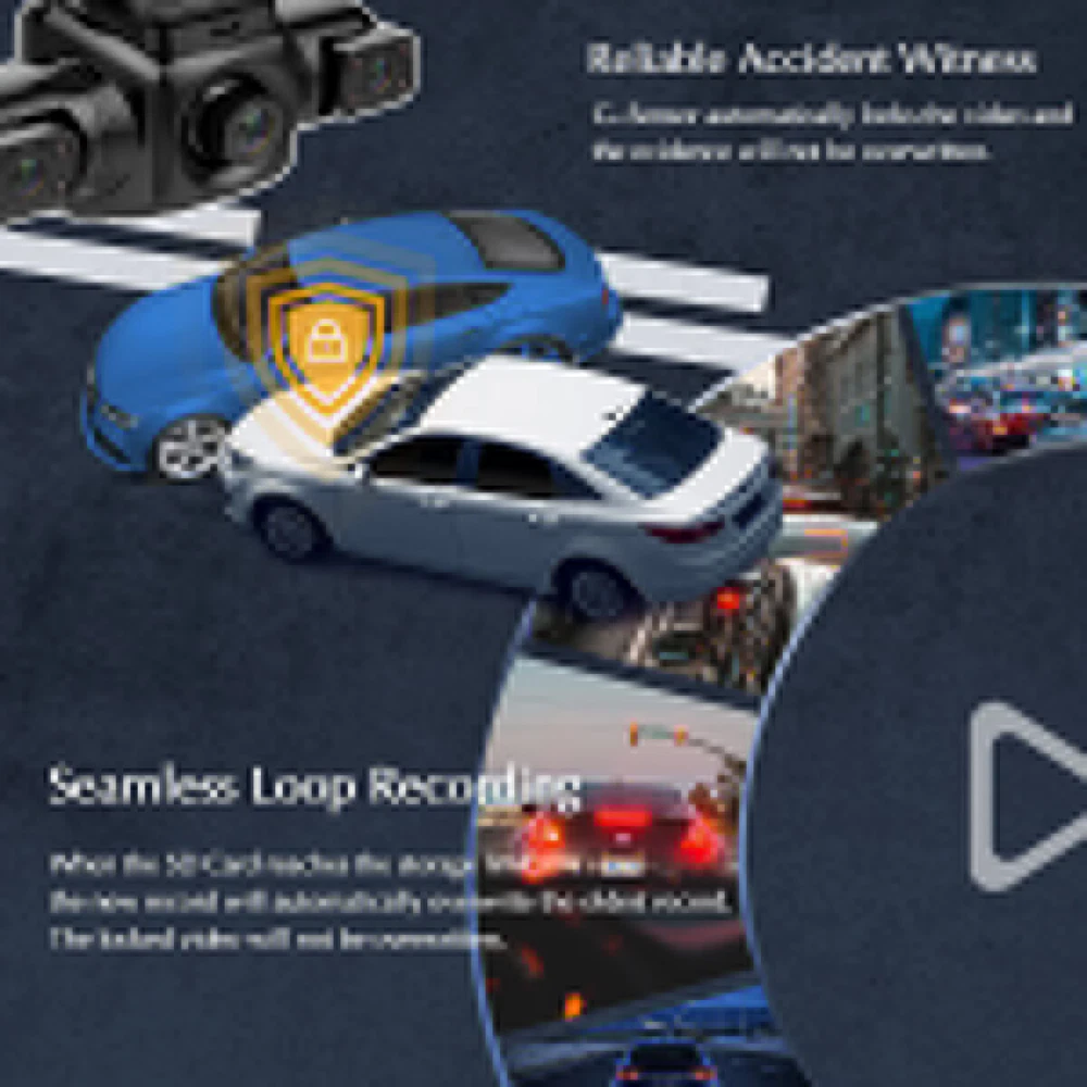 360° WiFi 4 Channel 2K Car Dash Cam with G-Sensor DVR