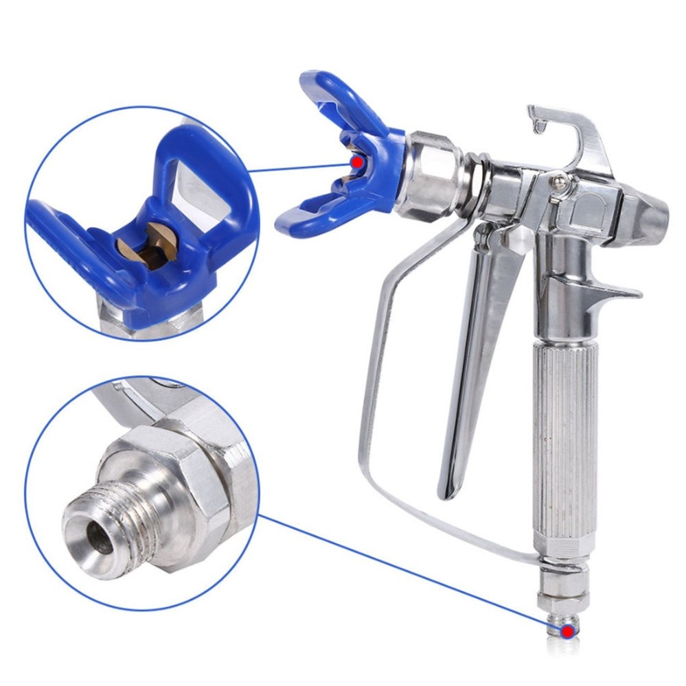 Package Included: 1 x spray paint (with base) 1 x517 or 525 random airless spray tip (with seal) 5 x Airless Paint Spray Gun Filter (60mesh) Airless spray gun is perfect for varnishing and dispersion paints. It works with a maximum pressure of 248 bar. Works with the nozzle. Connection type G 1/4 or G 7/8 male. Made of stainless steel, high quality, rust resistant, sturdy and durable.Distance of spray: 300 mm.Pressure output: 20.7MPA. Widely used in ships, bridges, towers, poles and other large long-term metal structures of the industry anti-corrosion and painting of the construction industry Designed in the design of filters, easy to replace, it is possible to filter the paint to reduce nozzle clogging. Ergonomic handle designed to reduce fatigue.Fast, easy to clean, easy to use, excellent atomization.