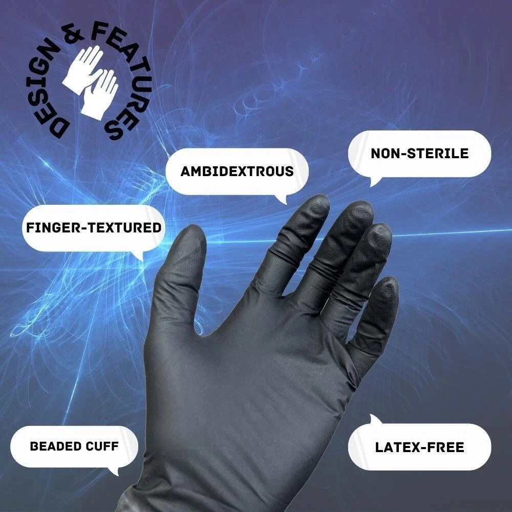 48000 Pcs Black Industrial Nitrile Gloves with Raised Diamond Texture 8 Mil S