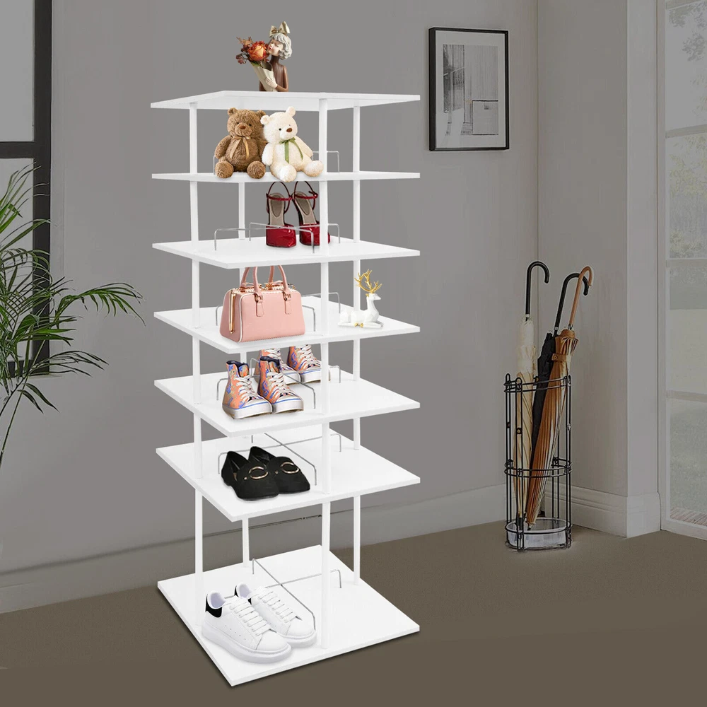 6-Tier Shoe Storage Rack 360° Rotating Shoes Shelf Organizer Shoe Display Rack Welcom to yanqiuwangluo66 A good shoe rack is not only a thoughtful steward of your shoes, but also an artistic accent to your home life. Our shoe storage rack is designed to hold shoes, hats or other items in an organized manner. It is made of high-class paintless board and metal with spray coating and baking paint processes, which is not only beautiful but also can be used for a long time. It can help you organize various kinds of shoes and solve storage problems in small homes. Key Features Build to Last: It is made of high-class paintless board and metal with spray coating and baking paint processes, which makes it wear-resistant, environmentally friendly, and not easy to deform, so you can use it for years and years. Large Capacity: The 6-tier design, each tier can accommodate 4 pairs of regular shoes(for reference), makes this product spacious enough for a family's shoe storage needs. You can also place small potted plants, handbags, umbrellas, etc.(not included) on the top tier. Strong Load-bearing Capacity: The square base and the solid connection between the parts allow this product to hold up to 42.99 lbs, so you can use it to store shoes or bags (not included) with confidence. Display Assistant: With it, you can neatly arrange different types of shoes. The 8.26-inch and 17.32-inch tier spacing accommodates different heights of shoes such as trainers and tall boots. In addition, the bottom of this shoe rack can be rotated 360° for easy selection, access, and storage of shoes or other items. Thoughtful Design: The open design allows you to see your shoes at a glance for easy access while still allowing for effective ventilation. Elegant Appearance: The simple white color finish creates a touch of elegance and casualness. It blends well with a variety of interior styles, bringing functionality and aesthetics to your space. Space Saving: It utilizes vertical space wisely and has a small footprint(22.44*22.44 inches), which won't make the room congested. Simple Cleaning: Thanks to its smooth surface and simple structure, you can easily clean it with a soft rag (not included). Ideal Gift : This quality and practical product is a nice housewarming gift for your family and friends. Buy with Confidence: We stand behind all our guests and look forward to assisting you with your purchase. It is our pleasure to answer your confusion and questions. The end of the story between us is not "we sell and you buy". Details Stable Base: The square base measuring 22.44*22.44 inches and with non-slip feet can effectively stabilize the product and prevent it from shaking. Center Crossbars: They can be good for dividing up placed items and making them neater. Smooth Edges: The rounded and smooth edges not only add to the aesthetics of the product but also improve the safety of use. Application It can be used in homes, stores, clothing stores, hotels, gift stores, or factory warehouses to hold various styles of shoes, hats, handbags, and so on. Specifications Color: White Material: Paintless Board, Metal Process: Spray Coating, Baking Paint Style: Modern Shape: Rectangular Assembly Required: Yes Mount Type: Floor Mount Feature: 360° Rotatable Product Care Instructions: Wipe with a Soft Cloth Number of Tiers: 6 Number of Shoes Applicable Each Tier: 4 Pairs(For Reference) Total Load-bearing Capacity: About 19.5kg/42.99lbs Gross Weight: 19kg/41.89lbs Net Weight: 18.05kg/39.79lbs Tier Spacing: 21cm/8.26in, 44cm/17.32in Product Size: 57*57*155cm/22.44*22.44*61.02in Package Size: 60*60*24cm/23.62*23.62*9.45in Package Included 1* Shoe Storage Rack All Accessories for Assembly Notes Please confirm the product size before purchasing. Please note that this product does not include display items such as shoes. Please note that the number of shoes that can be stored will vary depending on the size and height of the shoes. Please allow the slight color difference caused by the shooting light and 1-3cm error due to manual measurement, and make sure you do not mind before you order. Payment Delivery details Terms of sales About us Contact us Payment We accept ebay payment 。 Fees such as import duties, taxes are not included in the item price or shipping costs. These charges are the buyer's responsibility. Delivery details Shipping: 2-9 working days to: USA Terms of sales We maintain high standards of excellence and strive for hundred percent customer satisfaction. Feedback is very important to us. We hope that you contact us immediately before you give neutral or negative feedback, so that we can address your concerns. It is impossible to address issues if we do not know about them! About us Your satis faction is our ultimate goal. We work hard to earn your trust and future business. Our certified technicians have tested each item before shipping. The unit comes with 1 year limited warranty on all manufacturing defects. a) If you receive a defective item, you may return it or ask for a discount. Please contact us within 14 days after you receive the package. b) What you returned must be intact and in its original packaging as re? u. Customer is responsible for shipping costs of the returned item. c) We will cover the cost of shipping back t with the shipping rate indicated in the registration page. We will send you a new unit or refund the full payment you paid. Thank you. Contact us Business Hour Business Hour: Monday To Friday: 8:30 AM to 5:00 PM (Beijing China time) Due to time zones, our reply to your questions may not be immediately. But within above working time, we will reply your email within 24 hours. If it's non-workdays, please kindly be patient and wait till Monday. Please contact us with ebay message. Please feel free to contact us if you have any questions. Monday To Friday: 8:30 AM to 5:00 PM (Beijing China time) Due to time zones, our reply to your questions may not be immediately. But within above working time, we wi