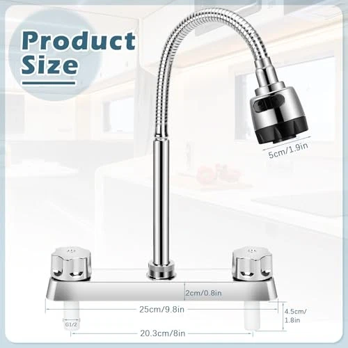 Finish Type: Polished Model Name: RV Kitchen Faucet Color: Silver Item Height: 1 MPN: Does Not Apply Installation Type: Single Hole Batteries Required: No Brand: Does Not Apply Number of Handles: 1 Customer Reviews: 4.3 out of 5 stars Handle Location: Center UPC: Does Not Apply Finish: Polished Item Weight: 1.17 pounds Hole Count: 1 Handle Type: Knob Part Number: XAB1 gtin13: Does Not Apply Type: Does Not Apply Item model number: XAB1 EAN: Does Not Apply Date First Available: June 30, 2024 Special Features: water proof/weather proof, 360 Swivel, Dual Function Sprayer Included Components: Installation Hardware Manufacturer: Does Not Apply Material: Acrylonitrile Butadiene Styrene, Copper Alloy Spout Design: gooseneck high-arc swivel Special Feature: water proof/weather proof, 360 Swivel, Dual Function Sprayer Item Width: 1 Country of Origin: China Recommended Uses For Product: RV Kitchen&Bathroom Item Length: 1 Is Electric: No Mounting Type: Floor Mount Handle Material: Stainless Steel Product Dimensions: 12.6"D x 5.1"W x 2.55"H Style: Modern