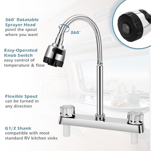 Menu 1. We require immediate payment. 2. We currently accept payment via eBay managed payments only. 3. Once payment is cleared, we will dispatch your shipment within 1-3 business days. Please refer to the "Shipping" tab for more information regarding shipping speed to your destination. RV Kitchen Faucet, Camper Faucet Kitchen with Flexible Arc 360 Degree Rotatable Dual Function Sprayer, RV Sink Faucets for Motorhomes, Travel Trailers (8 Inches Apart) Product description 【RV Kitchen Sink Faucet】 RV Sink Faucet features a 360-degree rotating spray and flexible spout design. It is easy to move and bend to fit anyw in the sink and quickly changes from a spray to a stream. (Every rv sink tap is factory tested for water pressure) 【Lightweight Design for RV】 RV sink faucet is constructed from stainless steel arch and 8" ABS plastic body. The classic knob switch design provides effortless operation, allowing you to easily adjust the water temperature and flow to your preference 【Dual water flow mode】 RV faucets kitchen have two water flow modes, shower and bubble. Easily switch between the two modes for different wash tasks. Enjoy a comfortable and personalised wash experience with a simple turn of the knob 【Easy Operation】Camper faucet kitchen with a 1/2" external thread inlet handle, our tap is compatible with most standard RV kitchen sinks. You can easily install it yourself without a plumber, saving you time and money. 【Service Attitude】If you have any questions about the RV sink faucet, please let me konw. provides trustworthy after-sales service. Contact customer service and we will respond within 24 hours PLEASE MESSAGE US IF YOU HAVE ANY OTHER QUESTIONS, AND MANY THANKS FOR READING ALL OF THIS. Copyright ©#. All Rights Reserved.