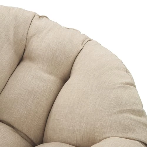 Create a laid back vibe in your home with our twist on the classic papasan chair design. Nest into the generously large Dacron-filled cushion. Enjoy the boho styling of our durable resin wicker wrapped over a metal frame. Complete with a 360° swivel to twist and turn to your heart’s content. Tune in to a time when listening to your favorite albums and sipping on a cool, refreshing drink was your only ambition for the day. Add a bit of fun to your living room, family room or dorm with our easy, casual Papasan Chair. Available in several exciting colors and finishes. Durable, well built and just plain fun! Enjoy the boho styling of our papasan chair made with durable resin wicker wrapped over a metal frame. Lounge and twist and turn to your heart’s content with virtually frictionless 360 degree swivel. Nest and relax into the generously large high quality soft Dacron-filled button tufted cushion. The seat cushion is easy to remove dust and debris since it is tied on the frame by straps. Overall Size: 40” W x 36” D x 35.25” H; Seat Size: 40” Diameter x 4.5” T; Back Size: 40” W x 18” H x 4.5” T