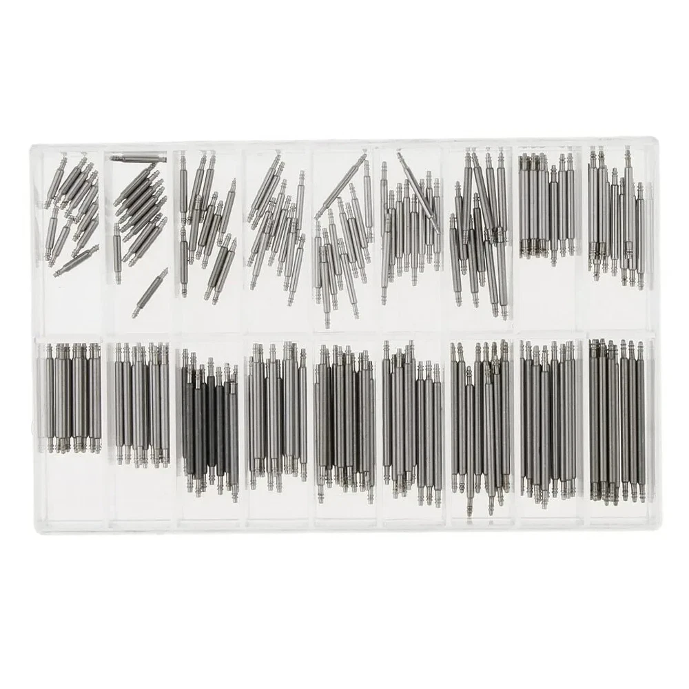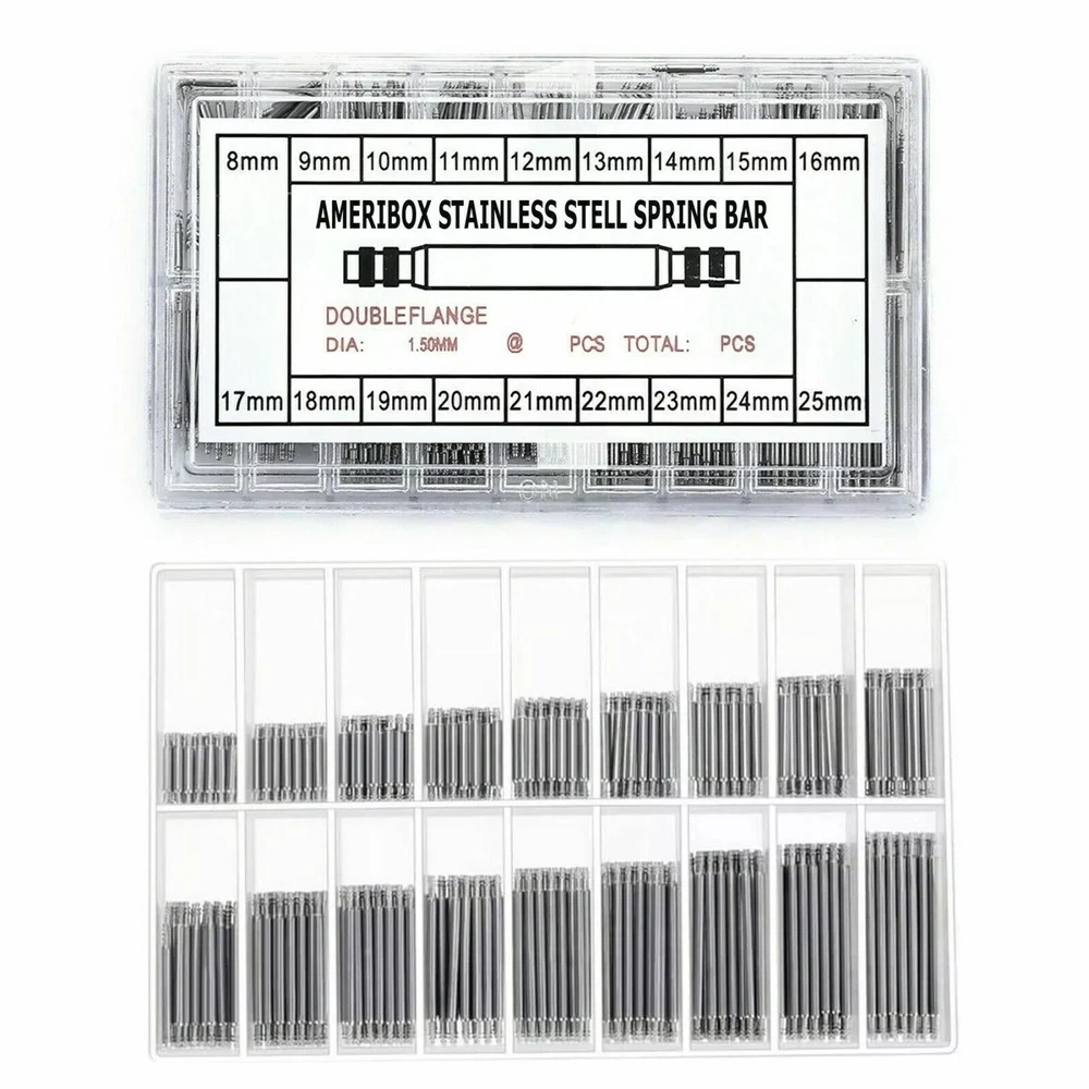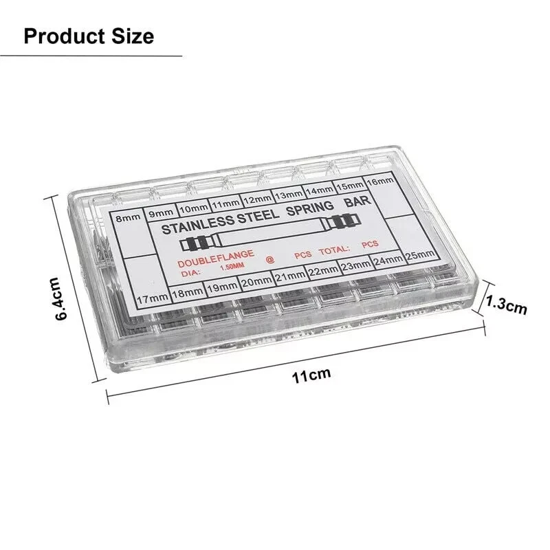 360pcs Heavy Duty Watch PINS SPRING BARS Replacement Band Strap Link 8-25mm Repair Kit Stainless Steel Features: High-Quality Materials : Made of 316L stainless steel for strength and durability, keep your watch safe. S pring bars, watch hands are made of stainless steel, durable, can repair watches for a long time, and are widely used in various watch band replacement, watch bracelet repair and other watch repair items. Compatibility : Designed to fit any watch that uses standard 18mm, 19mm, 20mm, 21mm, 22mm , 23mm, 24mm, 25mm, 26mm spring bars. The size you need is the same as the lug width of your watch band (or buckle width if the spring bar is to be used for a buckle). Double Flange Spring Ba r : Double shoulder design allowing you to quickly and easily insert and remove for repair or adjustment. Great for watch band replacement, watch repair, jewelry making; The special design of the repair tool can easily fit for the watch band, convenient to repair. Huge Amount : Approx. 360pcs spring bars. Packed in a transparent plastic box, easy to store and find the required size. Notes : Please allow slight dimension difference due to different manual measurement.