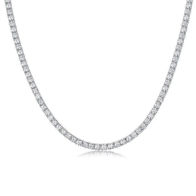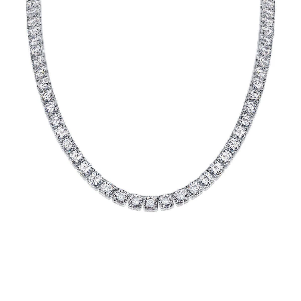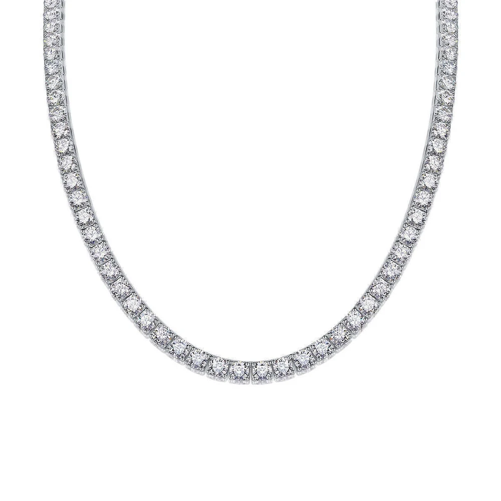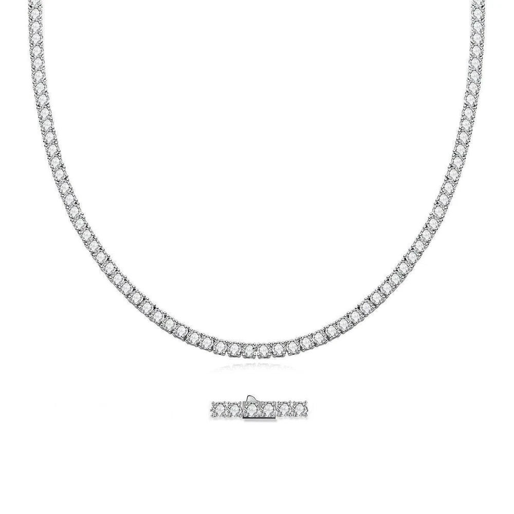 Brand: Unbranded Main Stone: Moissanite Metal: Sterling Silver Closure: Box Number of Gemstones: N/A Chain Type: Tennis Chain Theme: Beauty Handmade: Yes Setting Style: Prong Country/Region of Manufacture: China Style: Chain Type: Necklace Main Stone Color: White Main Stone Shape: Round Country of Origin: China Base Metal: Fine Silver Main Stone Creation: Lab-Created Occasion: Anniversary, Birthday, Christmas, Engagement, Mother's Day, Valentine's Day, Wedding Cut Grade: Excellent Secondary Stone: Moissanite Necklace Length: 18 in 20 in 22 in 24 in Features: Nickel-Free Metal Purity: 925 Color: White Gold