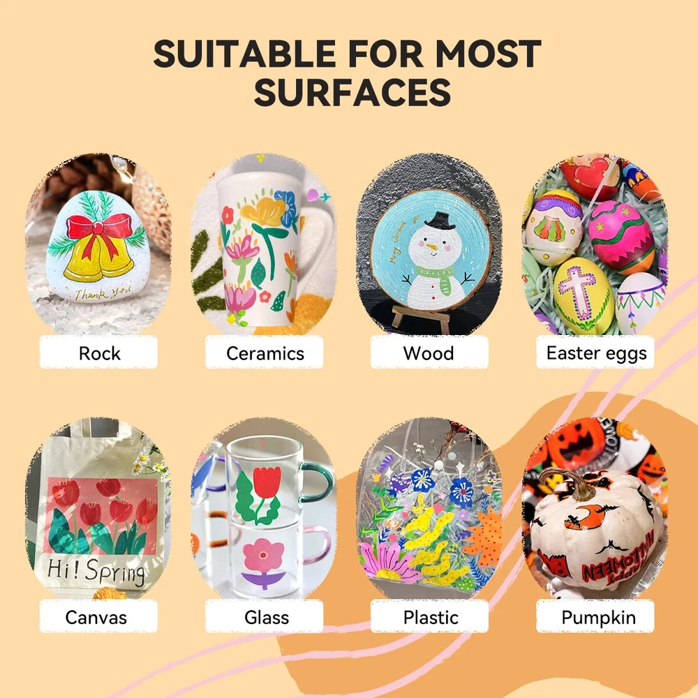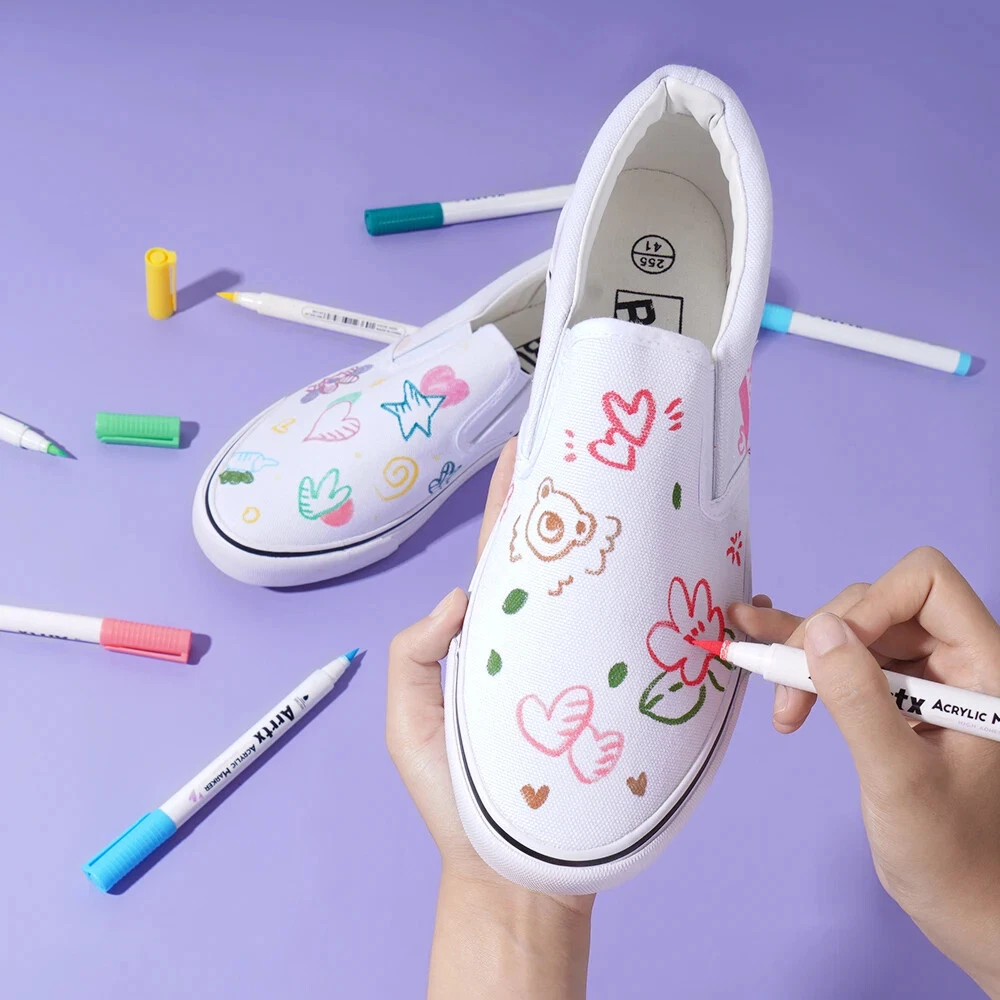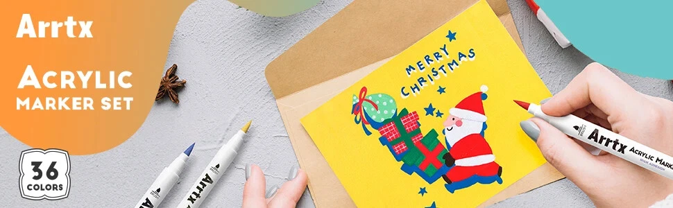 Arrtx 36D Color Acrylic Paint Pens Set 36 Vibrant Colors Acrylic Paint Pens - This set contains one color from 30A (35), contains 10 colors from 30B (00/03/17/18/28/38/53/56/61/98), extra increasing 25 new colors added. This marker set provides more new color shades for creativity. Please note: When you open the package for the first time, the order of placing the acrylic markers is the same as the order of the color card stickers, just stick them in order. Quick Dry and Waterproof - The highly pigmented paint is high covering, water-resistant, and abrasion proof allowing the application to any surface. Arrtx acrylic paint pens are water-based ink. These paint markers flow without flooding or jamming, it's permanent when dry. Note: Please tighten the cap and put pens horizontally if you don't use them. Work Well on Diverse Surface-Arrtx acrylic markers set provides water-based smooth ink and excellent coverage for a variety of surfaces, works for paper, cardstock, metal, rock painting, wood, plastic, canvas, fabric, stone, Easter eggs, easter decoration, metal, Christmas ornament, Halloween pumpkin painting, calligraphy, scrapbook, brush lettering, Christmas card, birthday gifts, greeting card, or any DIY crafts projects and more. Let's express imagination! Easy to Apply, No Pressing Down,No Shaking - With new design, these pens are very easy to apply and no need to shake and press for tips while using, you only need to open the cap to use pen.Round pen body made it comfortable to grip. Safe and Non-toxic - Arrtx drawing markers set adopts water-based environmental protection pigment ink, which is non-toxic, tasteless, waterproof, and high temperature resistant. With high-quality certificated ink makes these painting pens safe and suitable for both kids and adults for all kinds of DIY paintings. Ideal Gift - Arrtx markers are packaged in a unique two-tier design box to keep your pen clean and well organized. Non-Toxic & Safe, good gift for kids, students, artists, and adults at Christmas, Halloween, Easter Day, Thanksgiving, mothers day, and any other occasions.
