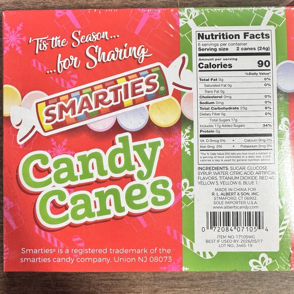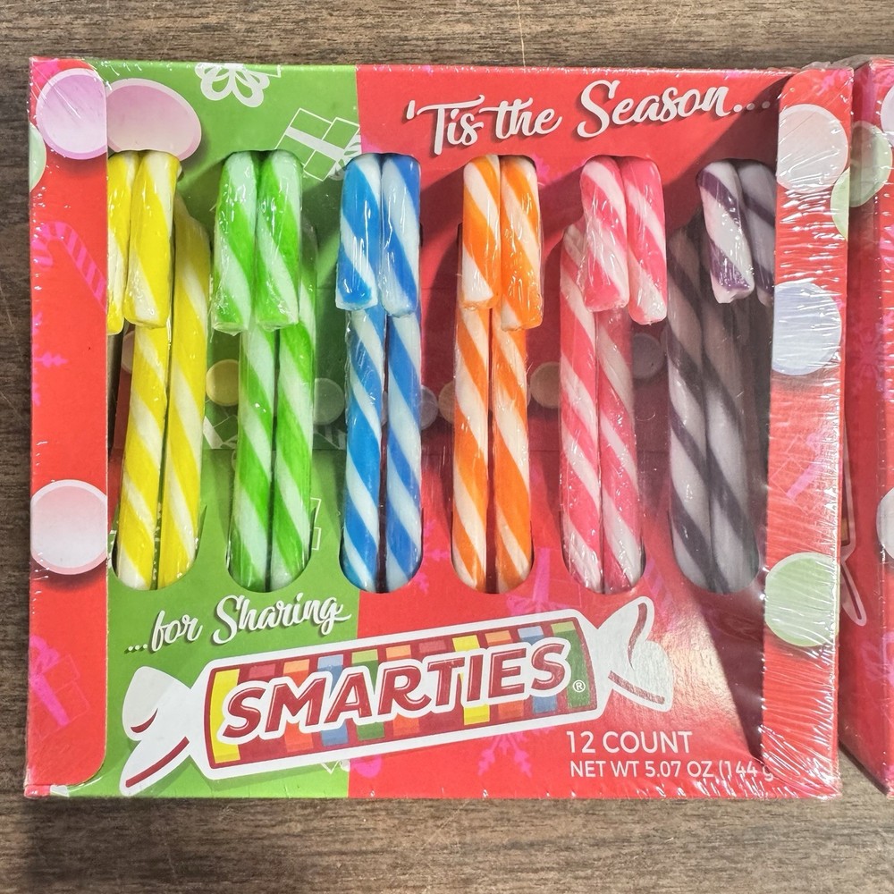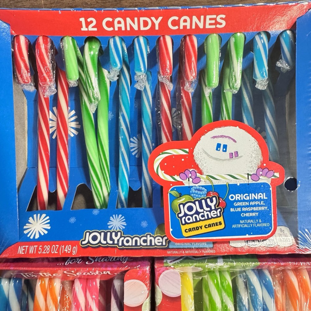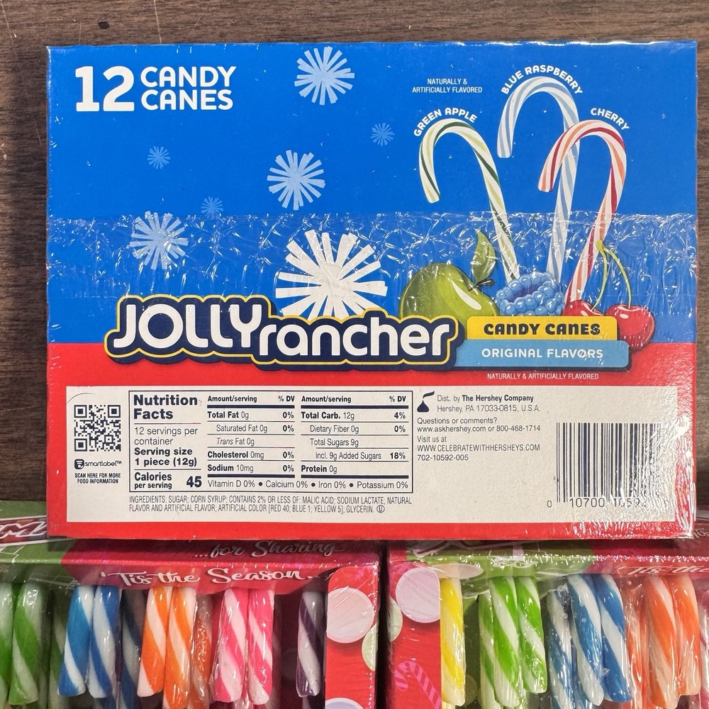 2 boxes of 12 units each. Smarties candy canes 1 boxes of 12 units each. Jolly rancher Candy canes All individually wrapped 36 total units of candy canes.