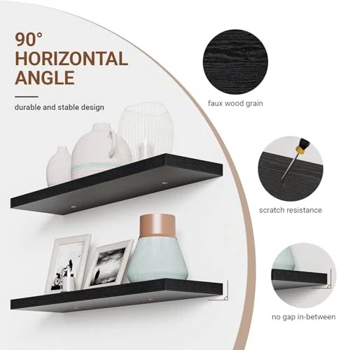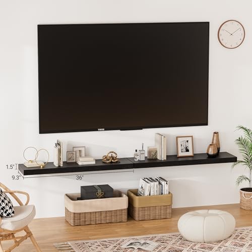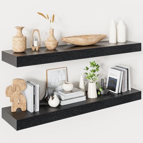 Return Policy Fast Delivery Trusted seller Floating Shelves for Wall 36 Inches Long,9.3" Deep Black Floating Shelf Set of 2,Wall Mounted Shelves for Bathroom Bedroom Living Room Kitchen Office,Shelf for Books Storage,Home Decor Product Description 【Modern Rustic Look】Our 36 inch floating shelves for wall are made from durable engineered wood,which blends well with modern and rustic farmhouse wall decor alike.The black floating shelves is available in colors & sizes,perfect for storing books,plants,collectibles,etc.. 【Longer Design】Our pretty 36 inch wall shelves are 36"W x 9.3"D x 1.5"H.Our black shelves for wall is longer than traditional designs and can hold more items.The 36 inch floating shelf optimize wall space,helping organize essentials without taking up floor space in your home. 【Sturdy & Reliable Material】The 36 Floating shelf for wall use metal brackets and screws to be firmly fixed to the wall without sagging.Our floating shelves 36 inch are made of high quality MDF material,can hold up to 50 lbs to safely place your items. 【Multi-used Applicability】Invisible long floating shelves for wall for living room,bedroom,study,bathroom & kitchen decor.It can be used as wall shelves for bedroom,wall shelves for living room,floating shelves for kitchen,floating shelves bathroom,coffee bar shelves,etc.. 【Easy to Install】Our long wall shelf can be easily installed in minutes with the installation manual.Convenient to wipe and easy to maintain.This deep floating shelves for wall is also an ideal gift for family and friends. Shipping Returns Payment Shipping Shipping is FREE to all addresses other than APO/PO boxes in the lower 48 states. All our stock ships from US-based warehouses. Shipped via USPS or UPS (depending on location and package weight) Unless stated otherwise, all orders will ship within 24-72 hours of your payment being processed. Check our feedback to see the great reviews of FAST shipping we offer. Returns Seller does not accept returns Payment We currently accept payment via eBay managed payments only. Once payment is cleared, we will dispatch your shipment within 1-3 business days. Please refer to the "Shipping" tab for more information regarding shipping speed to your destination.