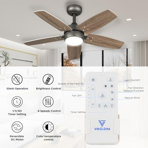 $ 75.8252 Inch Walnut Dimmable Ceiling Fan with Remote Control and 3 Blades