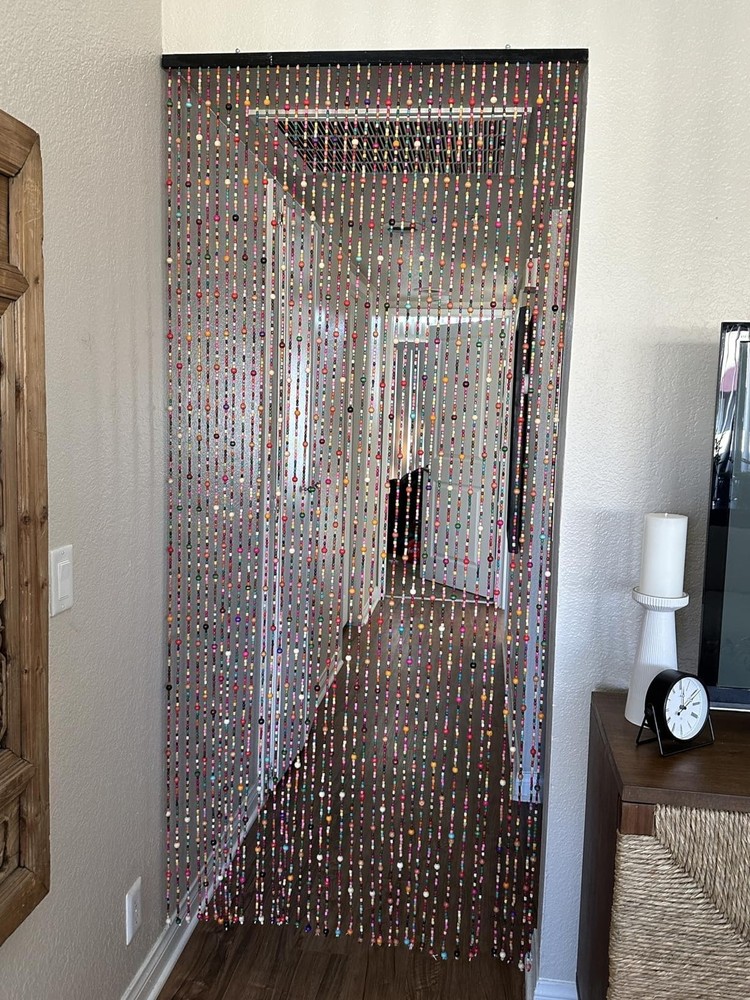 Introducing our Bamboo Wood Beaded Curtain "Boho" Rainbow, measuring 35" wide by 78" long and featuring 41 strands of vibrant wooden beads. This curtain is a delightful fusion of fun shapes and colors, ready to captivate your guests right out of the box! The beads come in a variety of shapes, including 1/2" round beads alternating with 1/8" square beads, creating a dynamic visual effect that not only catches the eye but also lightens the mood wherever it hangs. Boho weighs 3.2 lbs and comes with a black-painted wooden headrail, complete with 2 attached eyelets for easy hanging. Please note that due to the handmade nature of these curtains, there might be occasional imperfections in the headrail paint coverage, but rest assured, these are fully usable. This hand-painted and hand-strung curtain is not just visually stunning but also practical. Its design prevents tangling, making it an excellent replacement for traditional doors, closet doors, or as room dividers. Ideal for parties and anyone who appreciates vibrant colors, "Boho" brings to mind the playful charm of gum balls. This curtain would make a fantastic backdrop for candy stores, play areas, and rec rooms. Moreover, it offers a fresh and lively alternative for windows, doorways, or even boring closet or pantry doors within your home. Experience the lively spirit of "Boho" and explore its versatile applications. Don't miss the chance to watch our video, showcasing the wonderful features of our wood beaded curtain. Let the colors and creativity of "Boho" enhance your space with a vibrant and energetic atmosphere! **Vibrant Visual Delight**: Elevate your space with our Bamboo Wood Beaded Curtain "Boho" Rainbow, a captivating fusion of colors and shapes. Measuring 35" wide by 78" long, it boasts 41 strands of vibrant wooden beads that instantly catch the eye and lighten the mood, creating a dynamic visual delight.Made From ECO-Friendly Material 【Quality Materials] The beads used in the beaded curtain are all high quality wooden beads. The smooth and bright surface of the wood beads in different colors gives a sense of serenity and luxury, creating a bohemian atmosphere. 【Multifunctional】Wooden Bead Curtains are not only perfect for decorations and accents, but can also be used as an insect screen or room divider. Maintain privacy and ventilation while letting in natural sunlight. Use them in indoor or outdoor entrances, porches or wall decorations. 【Easy to Install】There are two metal rings on the top wooden track, easy to install in just a few minutes with simple tools like nails and hammer. 【Perfect Decoration】This door curtain is suitable for your window, wall, living room, bedroom, doorway, patio, closet, kitchen, office, balcony, wall, bookshelf, study, desk, laundry room door and window decorations, make your room more charming.