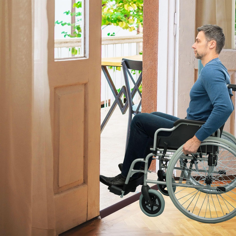 【Door Transition Strip】Is a breeze to install and fits thresholds between 1/2'' and 3/5'' in length. Just make sure the surface is smooth and dust-free before installation. 【Premium Quality Material】Made from PVC materials, our vinyl threshold ramp is waterproof, moisture-proof, and durable. Plus, it's easy to clean and maintain. 【Strong Adhesive】Our rubber transition ramp has excellent adhesion to floors, tiles, and wood, and sticks well even in hot weather. You can trust it to stay in place. 【Versatile Use】 Our threshold ramp is perfect for use as a transition piece between vinyl flooring and wooden or tiled thresholds. It can also be used as a floor transition strip reducer. 【Practical】Worked perfectly for helps in wheeling walkers and wheelchairs across thresholds. 【Cozy Tips】Product packaging may cause slight curling, after receiving the goods and opening them, bend them in reverse to restore their flatness. After installation, place a heavy object on top and let it stand for 1 hour under pressure, and it will work normally.