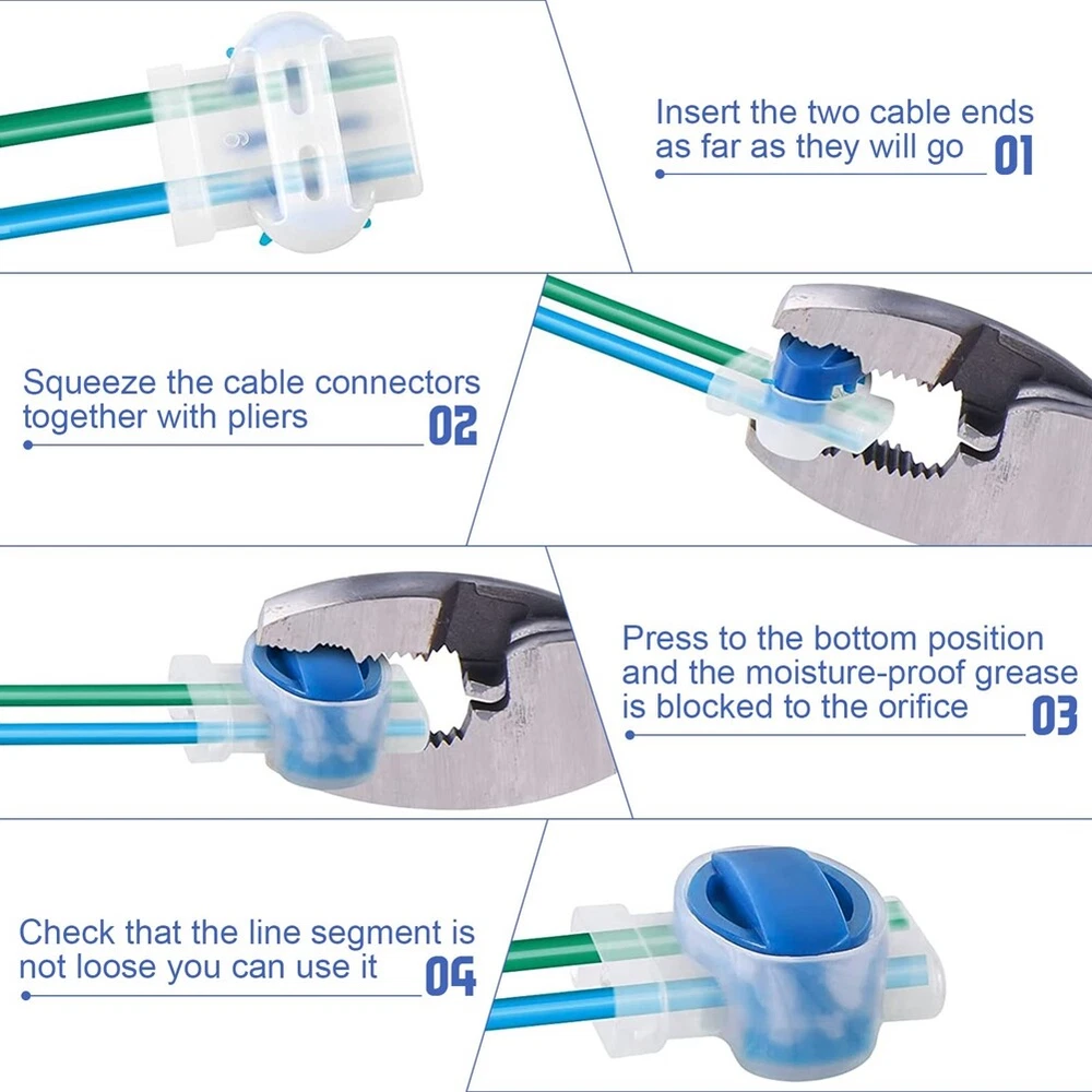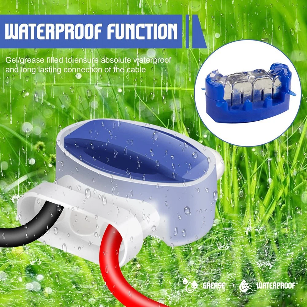 36PCS Cable Connectors for Robotic Lawnmowers, Connection Cable Wire3565 30pcs Professional Robot Mower Cord Connectors for Extending Robot Mower Boundary Line. With 6 pieces of snap lock, this clip is very stable and , unlike traditional charging station plugs, the convenient knife contact point saves the situation of peeling. The robot lawn mower wire connector is made of ABS insulation material, very strong, not easy to break, filled with gel, flame retardant, waterproof, moisture-proof, can form a closed environment, with higher , to a tight connection. Easy to use, no need to pull out the insulation of the wires, just insert the wire end directly into the wire hole of the pigtail connector, then press it with pliers to connect the 2 wires, save your time and reliable and long-lasting connect. The robot lawn mower cable connector kit is not only suitable for robot lawn mowers, but also for electric motors, electrical controllers, power supplies, household appliances, cable routing or other places, lighting and mechanical cable connectors. Suitable for outdoor and indoor use. Up to three wires can be connected. Color: Blue & Red Material: plastic Package Contents: 30pcs waterproof cable connector 6 x snap lock