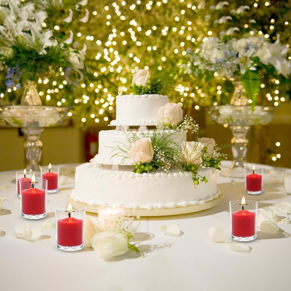 36-Pack 10-Hour Burgundy Red Votive Candles for Weddings & Parties, 1.5 Inch