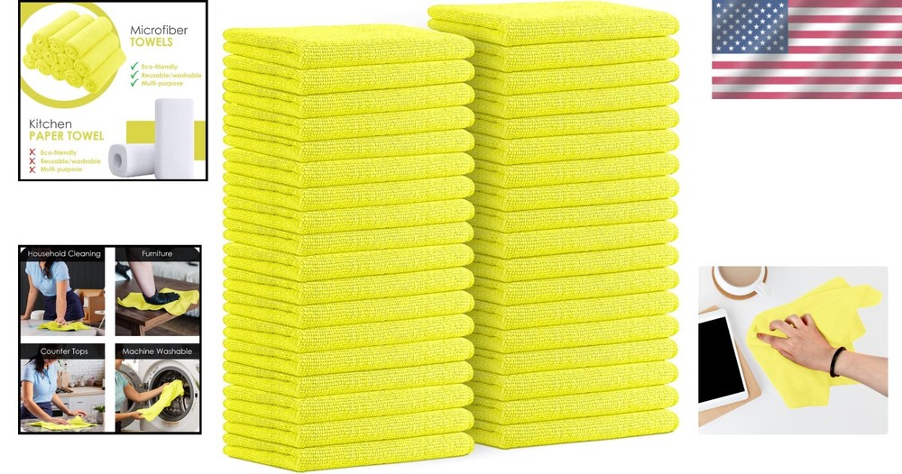 Microfiber Cleaning Cloths Pack of 36 16x16 Inches Reusable Absorbent Towels ‹ › ‹ › ‹ › ‹ › ‹ › ‹ › ‹ › ‹ › ‹ › ‹ › ‹ › Microfiber Cleaning Cloths - Pack of 36 Size: 16x16 Inches Value Pack: Enjoy an endless supply of cleaning rags with our generous pack of 36 large microfiber cleaning cloths. Soft and Absorbent: Experience the ultra-soft touch of our highly absorbent microfiber, perfect for cleaning windows, kitchenware, cars, and other delicate surfaces. Versatile: Effortlessly removes grease and particles from your microwave oven, plates, pots, and pans. Use as an excellent duster that eliminates fingerprints from silverware and glasses, ensuring a spotless kitchen. Long Lasting: Crafted with high-quality stitching and reinforced edges, these towels are made to endure hundreds of washes. Lightweight yet incredibly absorbent, the microfiber towels are designed for everyday use to elevate your cleaning experience. Easy Care: Simply toss our machine-washable microfiber cloths into the washer and dryer for hassle-free maintenance. Replace traditional paper towels with our reusable cloths to save time, energy, and money. Why Choose Our Microfiber Cleaning Cloths? Transform your cleaning routine with our luxurious pack of 36 microfiber cleaning cloths. Designed for both performance and softness, these cloths will quickly become your go-to option for all surfaces, achieving a level of clean you can feel proud of. Perfect for the eco-conscious individual, our reusable design takes convenience to new heights while promoting sustainability. Enjoy the elegant cleaning experience you deserve. Order your pack today and witness the difference! Shipping Free & Fast Shipping - We offer free shipping to most of the USA with a normal delivery time of 3-7 days. However, due to the current situation, additional delivery time (up to 3 weeks) may be required for some items. Alternative Carriers - We may use alternative carriers (e.g. USPS, FedEx, UPS, etc.) to ensure your package arrives safely and on time. Due to the use of multiple carriers, we are unable to provide a tracking number automatically. Handling Time - Orders are processed and shipped within 1-2 business days of receiving cleared payment. Shipping Restrictions - Shipping to Alaska, Hawaii, Puerto Rico, Guam, and other US territories may incur shipping charges or delivery restrictions. Please contact us before ordering, or your order can be refunded/cancelled. State Restrictions - There may be restrictions based on your state of purchase. For example, certain items may not be shipped to California due to state regulations. Contact for Tracking Updates - If you require tracking updates or have any concerns about the delivery of your order, please feel free to contact us, and we will be happy to assist you. Return 30-Day Hassle-Free Returns - We want you to be completely satisfied with your purchase. If you are not, you can return the item within 30 days of receiving it for a full refund or exchange. Easy Return Process - To start a return, simply contact us and we will provide you with a prepaid return shipping label and detailed instructions. Restocking Fee - There are no restocking fees for returns. However, the buyer is responsible for return shipping costs if the return is not due to a seller's error. Refund Processing Time - Refunds will be processed within 5 business days of receiving the returned item in its condition. Payment We accept all major credit cards, PayPal, and Apple Pay for your convenience. Your payment information is secure and encrypted to ensure a safe and seamless transaction. Please complete your payment within 3 days of purchase to avoid any delays in shipping. Feedback Your feedback is extremely important to us. We strive to provide the best products and customer service possible. If you are satisfied with your purchase, please take a moment to leave us a positive review. If you have any concerns or issues with your order, please contact us before leaving negative feedback. We are committed to resolving any problems and ensuring your satisfaction. Contact Us If you have any questions or concerns, please feel free to out to our customer support team. You can contact us through the eBay messaging system. We are available Monday to Friday, 9:00 am to 5:00 pm EST, and we will do our best to respond to your inquiry within 24 hours. Buy it now and enjoy a pleasant shopping experience! Item Height: 0.2 Inches Unit Quantity: 36 Material: Microfiber Features: Lightweight,Lint Free,Reusable,Highly Absorbent,Durable,Machine Washable Theme: No Theme Type: Cloth Color: Yellow For: Kitchen Size: Large Capacity: More Than 100 Loads Number in Pack: 36 Item Weight: 0.5 lb Unit Type: Unit