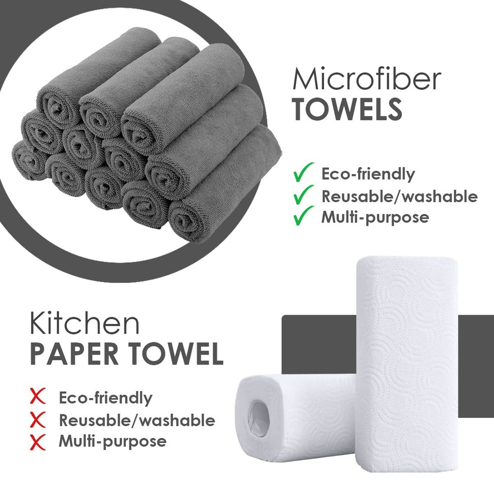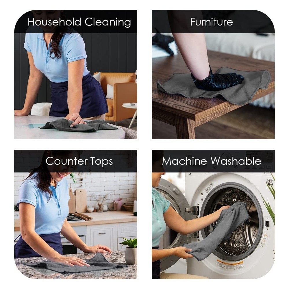 Microfiber cleaning cloth Value Pack: These large microfiber cleaning cloths come in a pack of 36 measuring 16x16 Inches. The bulk pack means you will have an endless supply of cleaning rags by your side. Soft and Absorbent: Ultra soft and highly absorbent microfiber cleaning rags, great for cleaning windows, kitchenware, cars or other delicate surfaces. Versatile: Removes grease and particles from microwave oven, plates, pots or pans effortlessly. Not only that, you will be amazed they are also terrific duster that removes fingertips from silverware and glasses easily and leaves your kitchen spotless. Long Lasting: These microfiber towels feature high quality stitching with reinforced edges, they are durable and made to last hundreds of washings. They are lightweight, super absorbent and dry quickly, use them everyday to enjoy your cleaning. Easy Care: Our microfiber cleaning cloths are machine washable, making maintenance easy. Just toss them into the washer and dryer, saving you time and energy. Replace paper towels with these to reuse them over and over again.