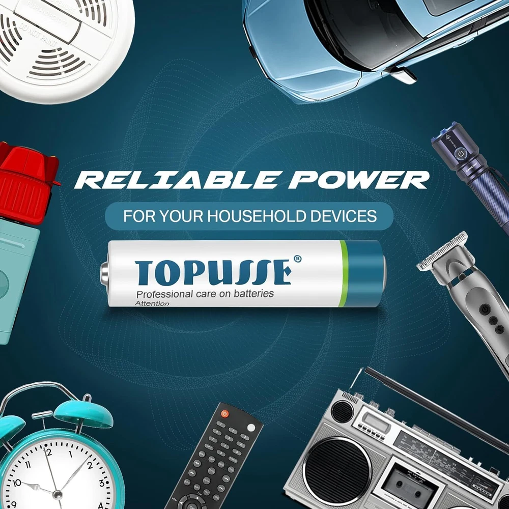 ✅【Long LASTING POWER】Topusse ultra alkaline batteries deliver long lasting power and performance,that is consistent and reliable for everyday use and emergency situations ✅【10-YEAR SHELF LIFE】 All alkaline batteries are always fresh and maintain power with an impressive ten-year shelf life in proper storage, Providing power in everything from emergency situations to playtime ✅【LEAKPROOF DESIGN】AAA batteries are designed with a double layer internal structure housed within a stainless steel cover so that they are 100% leakproof. Avoid short circuits, mixing and matching old batteries with new ones. ✅【ENVIRONMENTALLY CONSIDEREDE】Our 1.5-volt alkline batteries contain no mercury or cadmium, making them a smart choice for your family and for the environment. ✅【IDEAL FOR EVERYDAY USE】These batteries are compatible with all devices that require 1.5V AAA batteries for daily household devices such as game controllers, remote controls, and children's toys, and so on. Topusse alkaline aaa batteries are great to have on hand for a variety of everyday household devices, including clocks, remote controls, game controllers, digital cameras, toys and more. batteries won't leak and are designed to last ten years in storage. The 1.5-volt batteries contain no mercury or cadmium, making them a smart choice for your family and for the environment. our mission is to provide trusted and dependable power for everyday needs