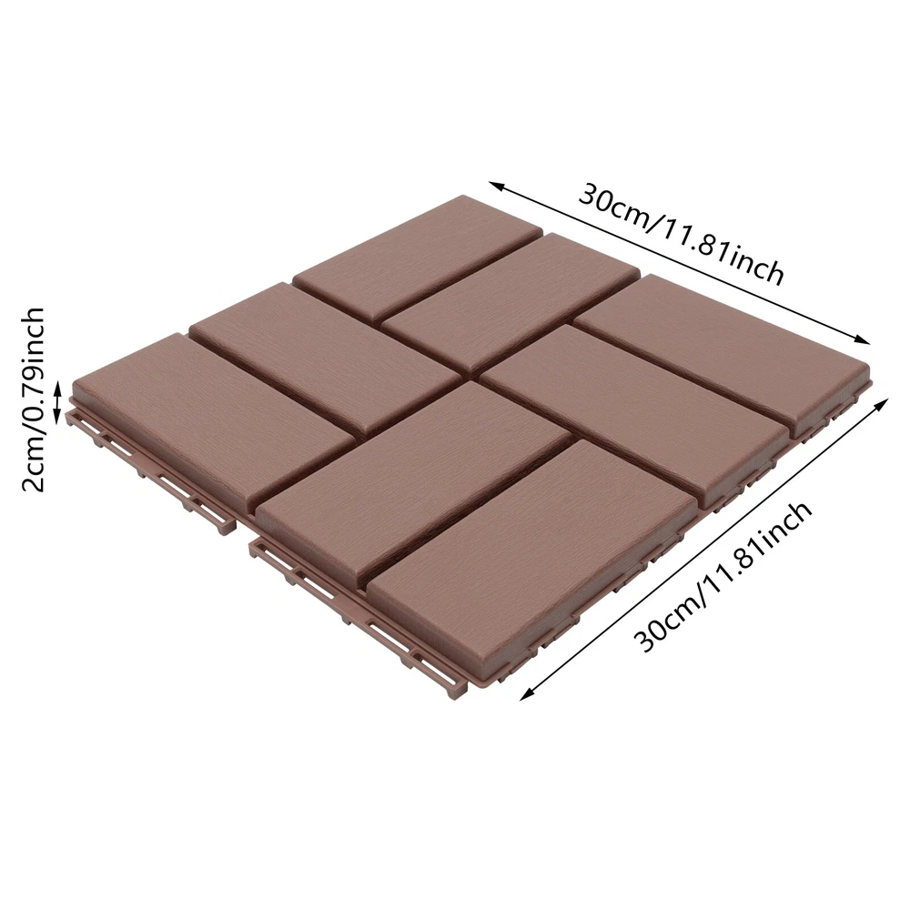 Welcome to the goforbigsales! Description The indoor floor is often scratched. Outdoor balconies and uneven courtyard floors will easily cause foot injuries. Look at our interlocking deck tiles. Made of high-quality PP , they can resist wear and tear, withstand harsh weather conditions, and are a lasting investment for any home. They are installed by interlocking snaps without any additional tools, creating a strong and attractive surface for patios, balconies, and more. With a beautiful appearance, they can create a unique space for you. Key Features High-quality Material: Unlike wooden deck tiles, premium PP and injection molding process make this item resistant to warping, decay, cracking, fading, scratching, splitting, bending, weather, and water, so you can use it indoors and outdoors. Powerful Life Assistant: It allows you to bid farewell to the cold tiles near the swimming pool or bathroom, stay away from muddy roads, potholes, or damp lawns, and avoid spending a lot of money on decorating the floor. It can make bumpy paths smoother, beautify unsightly cement floors, decorate pet or poultry houses, and solve the problem of slow and soaking bathtub drainage. Beautiful Appearance: Dark Grey color, simple line, clear texture, and 8 regular rectangle/6 trapezoids and triangl e spiced slats add beauty and fashionable elements to the product, so it will be eye-catching scenery in your room or courtyard. You can set small decorative stones or grass in the center for added beauty. Safe and Non-slip : The textured surface and slat design with grooves between each slat increase friction and reduce the accident rate of slipping, even when the tiles are wet. Efficient Drainage Design: The hollow base helps water drain quickly, maintains good breathability, and keeps the surface dry and less likely to breed bacteria. 36 PCS in One: The whole set contains 27/36 pieces and covers a large area(about 34.87ft²), meeting the larger area's needs, which is very affordable. Easy to Install: Four-way interlocking design, simple structure, and practical buckles allow you to quickly complete installation, without tools, glue, or complicated steps, which is time-saving and energy-saving. You can use a saw or other cutting tool(not included) to cut it to the size you want. Effortless Cleaning: The smooth surface and detachable design allow you to easily clean away dust and debris with water and towels. Customer Service: We aim to provide quality products and services. If you have any problems, please feel free to contact us. We will reply and solve the problem for you as soon as possible. Details 20mm Thickness : The 20mm thickness makes them highly versatile without obstructing any doors or fittings. Smooth Edges: The round and burr-free edges can better care for your skin when installing them or stepping on them barefoot. Multiple Stress Points: Several evenly distributed, thickened, and reinforced support points at the bottom of each piece make it balanced in force, resistant to compression, and not easily deformed, capable of withstanding vehicle crushing, with a load capacity of up to 3 tons. Application This product is ideal for various occasions, such as the patio deck, poolside, garden, balcony, lawn, backyard, greenhouse, entrance door, saunas, outdoor showers, sunrooms, mud rooms, playhouses, plant areas, gazebo, school playground, bath center, gym, pet house, car wash shop, shower room, swimming pool, corridor. Specification Material: PP Color: Coffee Style: Modern Shape: Square Pattern: Rectangle Process: Injection Molding Mount Type: Floor Mount Number of Pieces:36 Assembly Required: Yes Installation Method: Interlocking Total Load-bearing Capacity: About 3T/ 6613.87 lbs Temperature Range: -30-80℃/-22-176℉ Total Covering Area: 3.24m²/34.87ft² Each Product Size: 30*30*2cm/12*12*0.79in Package Size: 32*39*63cm/12.6*15.35*24.8in Net Weight: 10.5kg/23.15 1bs Gross Weight: 11kg/24.25 1bs Package Included 36Pcs* Interlocking Deck Tiles Notes Please keep the environment ventilated as much as possible. When installing, please pay attention to aligning the snap and then pressing it hard. Please allow the slight color difference caused by the shooting light and 1-3cm error due to manual measurement, and make sure you do not mind before ordering. Payment Delivery details Terms of sales About us Contact us Payment We accept ebay payment 。 Fees such as import duties, taxes are not included in the item price or shipping costs. These charges are the buyer's responsibility. Delivery details Shipping: 2-9 working days to: USA Terms of sales We maintain high standards of excellence and strive for hundred percent customer satisfaction. Feedback is very important to us. We hope that you contact us immediately before you give neutral or negative feedback, so that we can address your concerns. It is impossible to address issues if we do not know about them! About us Your satis faction is our ultimate goal. We work hard to earn your trust and future business. Our certified technicians have tested each item before shipping. The unit comes with 1 year limited warranty on all manufacturing defects. a) If you receive a defective item, you may return it or ask for a discount. Please contact us within 14 days after you receive the package. b) What you returned must be intact and in its original packaging as re? u. Customer is responsible for shipping costs of the returned item. c) We will cover the cost of shipping back t with the shipping rate indicated in the registration page. We will send you a new unit or refund the full payment you paid. Thank you. Contact us Business Hour Business Hour: Monday To Friday: 8:30 AM to 5:00 PM (Beijing China time) Due to time zones, our reply to your questions may not be immediately. But within above working time, we will reply your email within 24 hours. If it's non-workdays, please kindly be patient and wait till Monday. Please contact us with ebay message. Please feel free t