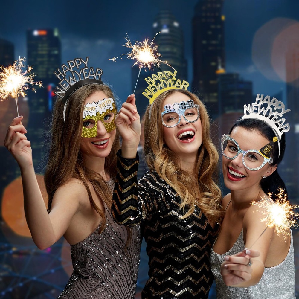 Features: Ideal gift: You can give these funny New Year eve party supplies to your family, friends, and neighbors, which are ideal New Year eve accessories to add festive atmosphere and energy to your New Year Eve party. Lightweight and reusable: 2023 New Years party favors, lightweight without adding too much pressure and easy to carry out. You can store them for next use without taking up too much space. Specifications: Material: paper, plastic Color: black, sliver and gold Size: as shown in the picture Package includes: 12 x Happy New Years eyeglasses 12 x Happy New Years headbands 12 x Musical blowouts Notes: Manual measurement, please allow slight errors on size. The color may exist a slight difference due to different screen displays. New Year Party Pack: you will get 36 pieces of happy New Year Eve party supplies, including 12 pieces of New Year glasses with 6 designs, 12 pieces of party paper headbands in 3 colors, and 12 pieces of squawker whistles, enough to meet your New Years decoration needs, bringing you a memorable party time Happy New Year Design: these 2025 new years eve party supplies favors are mainly in black, silver and gold colors, featuring 2025 and happy new year words, classic and elegant, adorable and eye catching, delicate New Year Eve accessories for role playing and taking photos Quality Materials: happy New Year Eve party headbands and glasses are made of quality cardboard paper, stable and wearproof, not easy to deform, comfortable and light to wear; While the noise maker is made of gold fringed plastic with black plastic mouthpieces, making funny noise at your upcoming New Year Eve party Suitable Size: 2025 Happy New Year party eyeglasses measure about 5.9 x 5.3 inches/ 15 x 13.5 cm, and happy New Years headband is about 4.3 x 7.1 inches/ 11 x 18 cm, suitable size for most kids and adults Wide Occasions: these New Year tiara and glasses are funny photo props for many occasions, such as New Year eve party, gatherings, celebration, Christmas, birthdays, weddings, offices, etc., adding a strong festival atmosphere to your party