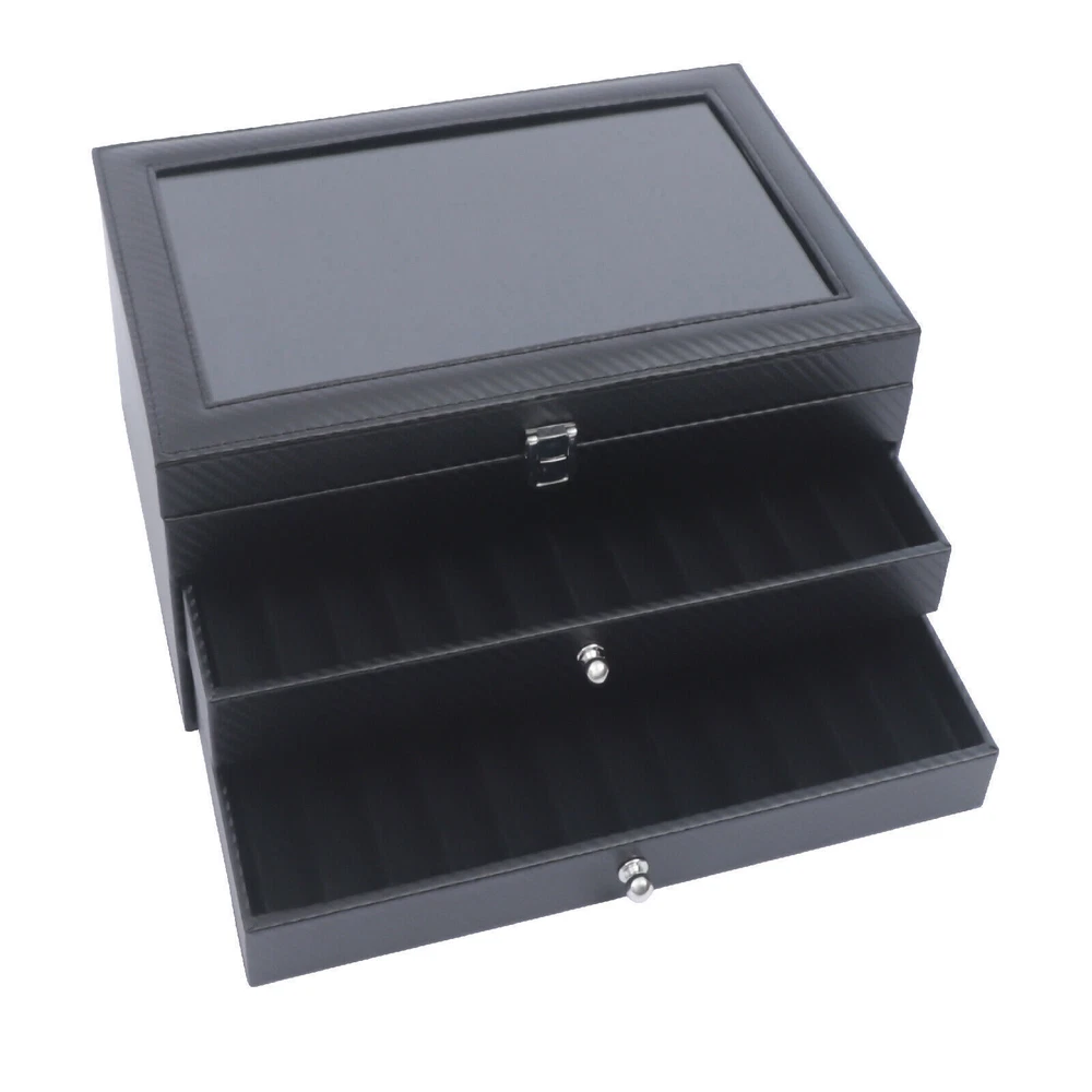 Specification Usage: Pen Special Feature: Portable Mounting Type: Free Standing Material: Charcoal Fiber, Density Boards, Glass, Fleece Color: Black Slot Quantity: 36 Gross Weight: 2.3kg/5.1lbs Net Weight: 2kg/4.4lbs Package Size: 35.5*24*17.5cm/14*9.4*6.9inch Product Size: 30*20*13.5cm/11.8*7.9*5.3inch Package Included 1* 36 Slots Fountain Pen Box πππ Welcome to Freetrade-shop πππ Description This is a beautiful 36-slots fountain pen box made of charcoal fiber and density boards. It not only is very durable but also has a large capacity to hold a lot of pens. Moreover, it is an ideal gift for friends and family. In addition to holding pens, it can also hold other small items. Key Features Large Capacity: This pen box has 3 layers with 36 slots. So it has enough storage space to hold most of your pen. Your desk will be very neat and tidy. Clear Glass Panel: The top of this pen box is designed with a clear glass panel. So you can see the items in the upper layer. It not only is convenient for you to quickly find the pen you want but also can display your beloved pen. Great Durability : The material of this pen box is the hard density board and wear-resistant charcoal fiber . So it has a long life span. In addition, the covering will look new even after a long time of usage. Dustproof Design: This pen box is designed with dustproof drawers and a box cover. So it is difficult for dust to enter the box. So the box can keep the items inside clean. Exquisite Appearance: This pen box has a simple and stylish design. The outer housing makes it look very elegant and high-end. It is a good decoration for your desk. Wonderful Gift: Most people can use this pen box. It is so beautiful and practical that it can be a wonderful gift for your family and friends . Space-saving: It will take up less space because of its small footprint of 11.8*7.9 inches and full use of vertical space. The unused space on the table is enough to place it. Guaranteed Customer Service: We aim to provide quality products and services. If you have any problems, please feel free to contact us. We will reply and solve the problem for you as soon as possible. Details Small Handle: The 2 drawers of the pen box are equipped with a beautiful metal handle to facilitate the user to open it. Metal Locking Latch: The top layer of this pen box is designed with a shiny metal latch. So you can lock the box after you put or take out the pen. Soft Fleece: The slots of the pen box are covered with soft fleece. This material is very soft and will not wear out the pen. On the contrary, it can protect your pen very well. Application It is suitable for study, bedroom, living room, office, school, classroom, studio, etc. Specification Usage: Pen Special Feature: Portable Mounting Type: Free Standing Material: Charcoal Fiber, Density Boards, Glass, Fleece Color: Black Slot Quantity: 36 Gross Weight: 2.3kg/5.1lbs Net Weight: 2kg/4.4lbs Package Size: 35.5*24*17.5cm/14*9.4*6.9inch Product Size: 30*20*13.5cm/11.8*7.9*5.3inch Package Included 1* 36 Slots Fountain Pen Box Notes Please allow the slight color difference caused by the shooting light and 1-3 cm error due to manual measurement, and make sure you do not mind before ordering. Payment Delivery details Terms of sales About us Contact us Payment We accept ebay payment γ Fees such as import duties, taxes are not included in the item price or shipping costs. These charges are the buyer's responsibility. Delivery details Shipping: 2-9 working days to: USA Terms of sales We maintain high standards of excellence and strive for hundred percent customer satisfaction. Feedback is very important to us. We hope that you contact us immediately before you give neutral or negative feedback, so that we can address your concerns. It is impossible to address issues if we do not know about them! About us Your satis faction is our ultimate goal. We work hard to earn your trust and future business. Our certified technicians have tested each item before shipping. The unit comes with 1 year limited warranty on all manufacturing defects. a) If you receive a defective item, you may return it or ask for a discount. Please contact us within 14 days after you receive the package. b) What you returned must be intact and in its original packaging as re? u. Customer is responsible for shipping costs of the returned item. c) We will cover the cost of shipping back t with the shipping rate indicated in the registration page. We will send you a new unit or refund the full payment you paid. Thank you. Contact us Business Hour Business Hour: Monday To Friday: 8:30 AM to 5:00 PM (Beijing China time) Due to time zones, our reply to your questions may not be immediately. But within above working time, we will reply your email within 24 hours. If it's non-workdays, please kindly be patient and wait till Monday. Please contact us with ebay message. Please feel free to contact us if you have any questions. Monday To Friday: 8:30 AM to 5:00 PM (Beijing China time) Due to time zones, our reply to your questions may not be immediately. But within above working time, we will reply your email within 24 hours. If it's non-workdays, please kindly be patient and wait till Monday. Please contact us with ebay message. Please feel free to contact us if you have any questions. *Features3*: Stable performance, Long service life 1.Feature*: Compact Design,Convenient Use 2.Feature*: Unique Appearance,Great Durability Material Charcoal Fiber, Density Boards, Glass, Fleece Vintage Yes Usage Pen Special Feature Portable Mounting Type Free Standing Slot Quantity 36 Gross Weight 2.3kg/5.1lbs Net Weight 2kg/4.4lbs Package Size 35.5*24*17.5cm/14*9.4*6.9inch Product Size 30*20*13.5cm/11.8*7.9*5.3inch UPC Does not apply