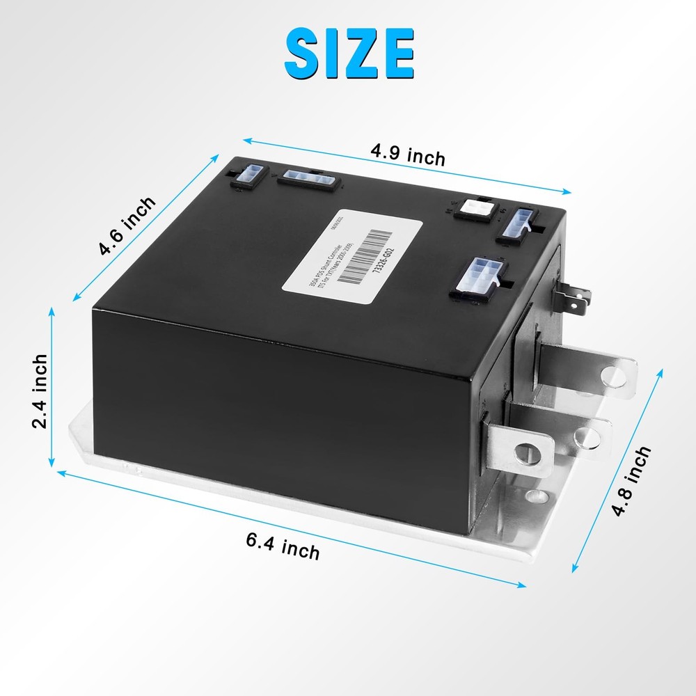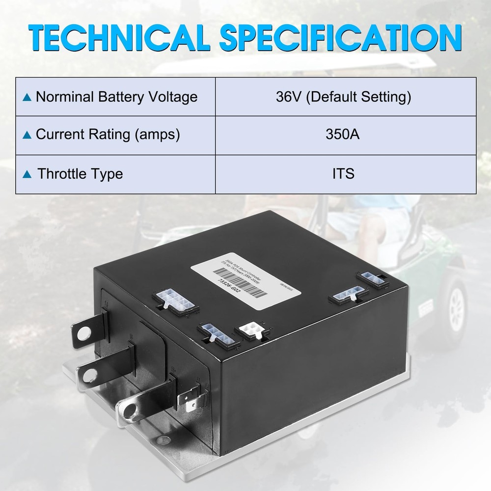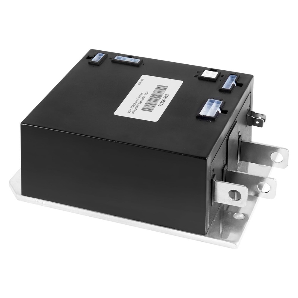 36V 350A PDS Controller 609083 for EZGO TXT 2000-2009 1206MX 73326-G02 73326-G03 Product Description FITMENT: Compatible with 2000-2009 EZGO TXT Golf Carts OEM PART NUMBER: Compatible with Curtis 73326-G02 73326G02 73326G04 73326G05 73326G06 73326G07 SPECIFICATION: We deliver controllers set to 36V / 350A, please refer to your own parts to make sure your parts are 36V / 350A FUNCTION: 1.Brake Control & Variable Drive Speed 2.Highly Efficient & Noiseless Operation 3.Temperature Protection 4.Cutback Function (Undervoltage) 5.Pot Fault Protection 6.Easy Installation 7.Tin-plating (Bus Bars Protection) 8.Allows Control Wiring Package included: 1 x Controller Note: 1.We provide clear pictures, measurements where possible. Please check as much as possible to make sure the item is the one that you need. 2.Please allow 1-10mm deviation due to manual measurement. 3.Due to light and screen difference, the item's color may be slightly different from the pictures. 4.make sure that the size and shape of the product matches your car. 5.No installation guides are included, we highly recommend to seek professional installation. Any damage during installation will not be refunded.