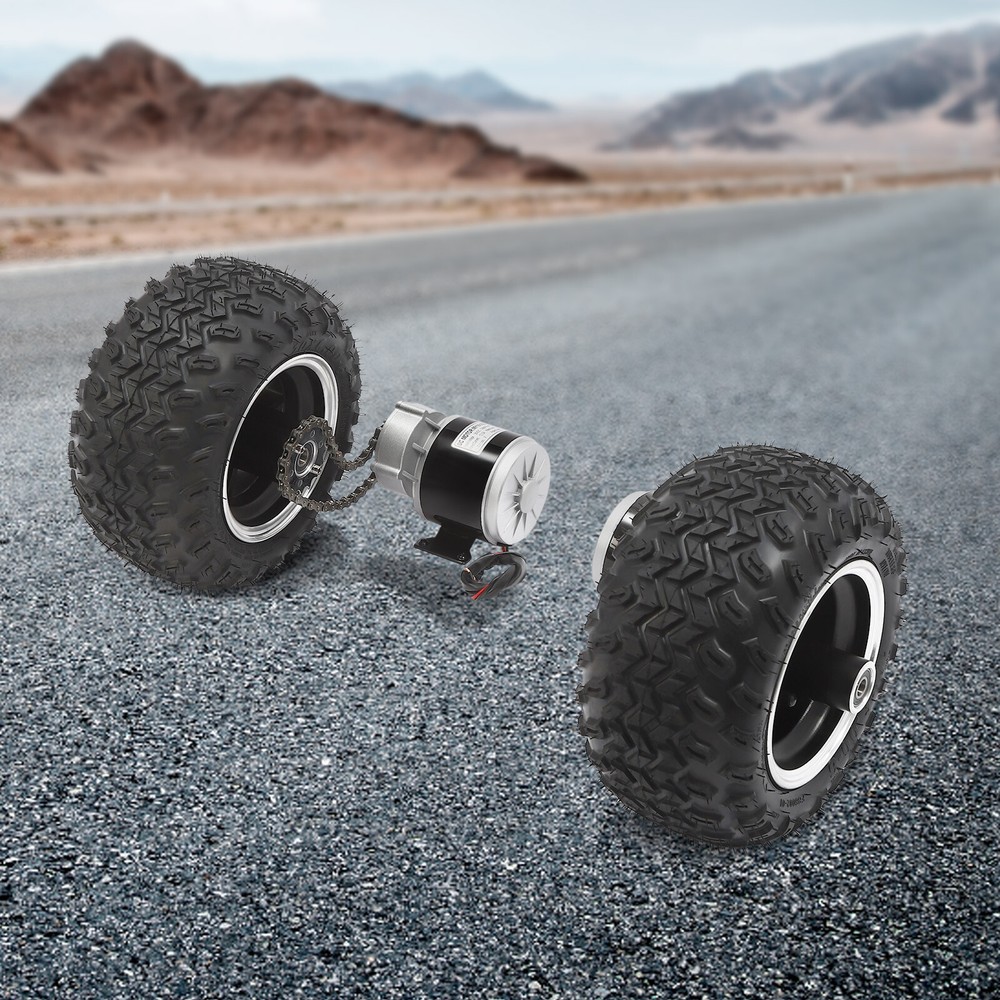 36V Electric Beach Scooter Motor Wheel 350W Electric Cart Scooter Conversion Kit Description If you are looking for a professional and safe kit for your scooter, then our set can be an ideal choice. Our products are made of high-quality materials and are built to last. Complete accessories are available to meet your needs. Its simple structure allows you to install and use it quickly. It is efficient and safe to use, providing a guarantee for your riding. Key Features Made to Last: This product is made of high-quality copper, iron, aluminum, magnetic and rubber, sturdy, stable, rust-proof and wear-resistant, ensuring long service life and strong load-bearing capacity, up to about 330.69-440.92lbs. Complete Kit: This kit contains the complete set of accessories needed to modify your scooter without the need to purchase them separately. Matching kits will provide you with more stable and consistent performance. Powerful Motor: With a 350W brush gear motor, it can reach a maximum speed of 6.21mile/h. Compared to brushless geared motors, it has high starting torque, simple control and high adaptability. High Safety: The F insulation class and IP33 protect grade make it safe and reliable, so you can use it with confidence. Electrical Assistance: The motor kit provides electric assistance to reduce the physical burden on the rider, especially when riding uphill, against the wind or over long distances, making the ride easier and more enjoyable for riders of all ages and fitness levels. Environmentally Friendly : Scooters, as a green mode of transportation, are conducive to environmental protection and are in line with the current concept of low-carbon life. Ideal Gift: With its good performance, you can give it as a gift to your family or friends who love to ride, so that they can enjoy the fun of riding. Good Customer Service: We aim to provide quality products and services. If you have problems, please feel free to contact us. We will reply and solve the problem for you as soon as possible. Details Large Wheels: 10inch diameter wheels with anti-skid design can easily handle most road conditions. Reverse Gear Switch: It solves the problem of traditional scooters that are difficult to reverse in narrow spaces or on steep ramps. It enables you to maneuver your scooter more safely and conveniently when you need to reverse, improving the flexibility and practicality of your vehicle. Digital Display Throttle: The digital display throttle is not only capable of adjusting the motor boost level, but also integrates a digital display screen to show the battery voltage in real time, allowing the rider to know the vehicle status at a glance, making the operation more intuitive and precise. Application This product is suitable for small go-karts, electric wheelchairs and senior mobility scooters. Specification Material: Copper, Iron, Aluminum, Magnetic and Rubber Color: Black Assembly Required: Yes Motor Type: Brush Gear Motor Rated Voltage: 36V Output Power: 350W Unload Current: ≤2A Rated Current: ≤12.5A Unload Speed: 370rpm Rated Speed: 330rpm Rated Torque: 1.1N.m Efficiency: ≥80% Gear Ratio: 9:7:1 Insulation Class: F Protect Grade: IP33 Speed: 10km/6.21mile/h Wheel Diameter: 25.4cm/10in Axle Hole Diameter: 12mm/0.47in Package Size: 48*37*30cm/18.9*14.57*11.81in Load Capacity: About 150-200kg/330.69-440.92lbs Gross Weight: 17kg/37.48lbs Package Included 2* Wheels 2* Motors 1* Digital Display Throttle Other Accessories for Assembly Notes Please note that this product cannot change gears, you can adjust the speed by throttle. Please note that this kit does not include batteries, you need to buy batteries separately, lead-acid batteries and lithium batteries are available, recommended battery capacity is 24V 15Ah. Please note that the wheels are vacuum tires without tubes. Please allow the slight color difference caused by the shooting light and 1-3cm error due to manual measurement, and make sure you do not mind before ordering. Payment Delivery details Terms of sales About us Contact us Payment We accept ebay payment 。 Fees such as import duties, taxes are not included in the item price or shipping costs. These charges are the buyer's responsibility. Delivery details Shipping: 2-9 working days to: USA Terms of sales We maintain high standards of excellence and strive for hundred percent customer satisfaction. Feedback is very important to us. We hope that you contact us immediately before you give neutral or negative feedback, so that we can address your concerns. It is impossible to address issues if we do not know about them! About us Your satis faction is our ultimate goal. We work hard to earn your trust and future business. Our certified technicians have tested each item before shipping. The unit comes with 1 year limited warranty on all manufacturing defects. a) If you receive a defective item, you may return it or ask for a discount. Please contact us within 14 days after you receive the package. b) What you returned must be intact and in its original packaging as re? u. Customer is responsible for shipping costs of the returned item. c) We will cover the cost of shipping back t with the shipping rate indicated in the registration page. We will send you a new unit or refund the full payment you paid. Thank you. Contact us Business Hour Business Hour: Monday To Friday: 8:30 AM to 5:00 PM (Beijing China time) Due to time zones, our reply to your questions may not be immediately. But within above working time, we will reply your email within 24 hours. If it's non-workdays, please kindly be patient and wait till Monday. Please contact us with ebay message. Please feel free to contact us if you have any questions. Monday To Friday: 8:30 AM to 5:00 PM (Beijing China time) Due to time zones, our reply to your questions may not be immediately. But within above working time, we will reply your email within 24 hours. If it's non-workdays, please kindly be patient and wait till Monday. Please contac