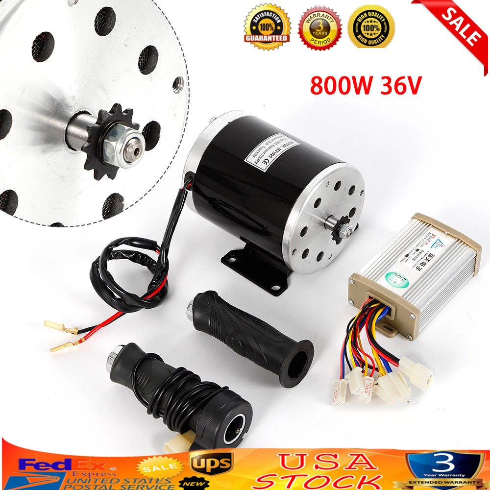 36V 800W Electric Brushed DC Motor kit E-Scooter Tricycle Bicycle Modified Kit ❤❤Welcome to our store❤❤ 800W 36V Electric Scooter Motor Kit W/ control Box & Throttle for Go-Kart E-Bike Model MY1020 Electric EVO scooter parts Fits : trycicle , electric scooter , extreme scooter and similar bikes 36V800W Brushed motor Unite Brand Motor We also have 36V500W for sale motor sprocket 11 teeth Diameter :10.5cm Bracket foot width:12cm Motor length :13.5cm Fit:T8F/25H Chain Rating power ?800W 36V Rating speed rate/rpm 2800rpm Rating torque /N.m : 2.8 N.m Efficiency : ≥78 Use : tricycle , bicycle , E-scooter, EVO scooter ,Extreme scooter Speed Controller: Works on 36V, 800W scooters and electric bikes Type: brush speed controller Voltage: 36V Wattage: 800W Casing material: aluminium Colour: silver Dimensions: 105 x 69 x 32mm Plug : 1.Red & Black (large cable) : Battery connections 2.Yellow & Blue : Motor connections 3.Red & Blue : Key Switch(power lock) (If there is no power door locks,red connection to blue) 4.Yellow & black : brake 5.Red & Yellow: Brake light 6.Red&Black(small cable) : indicator light 7.Red, Black & Blue: Speed Regulator 1-4 V(Throttle ) (Red:+5v,Black: - ,Blue :Signal Wire) 8.Red & Black (small cable): Charger Throttle: Universal 12v 24v 36v 48v Black Electric Scooter Bike Throttle Grip Beautiful outlook and modern design. Throttle Control Set Three Pin Suit for Electric Throttle,Motorcycle,Scooter. Specification: Style: striae & Round Operating voltage: 5V Adjustment range: Minimum ?1.0V; highest ?4.0V Function: high, medium and low grades governor Package includes : 1x controller + a set of x throttle+ 1x Motor Brand OCASAMI Features Fast Shipping,Durable Material,High Quality MPN Does Not Apply Type Electric Motor Brushed UPC Does not apply Shipping notice Can not ship to Puerto Rico,Alaska/Hawaii Color Black Custom Bundle no Voltage 36V OE/OEM Part Number Does not apply MPN ( MPN ) n/a Diameter 10.5cm Wattage 800W Efficiency ≥78 Bracket foot width 12cm Motor length 13.5cm Fit T8F/25H Chain Rating speed rate/rpm 2800rpm Rating torque /N.m 2.8 N.m On Jan 6, 2025 at 20:48:44 PST, seller added the following information: