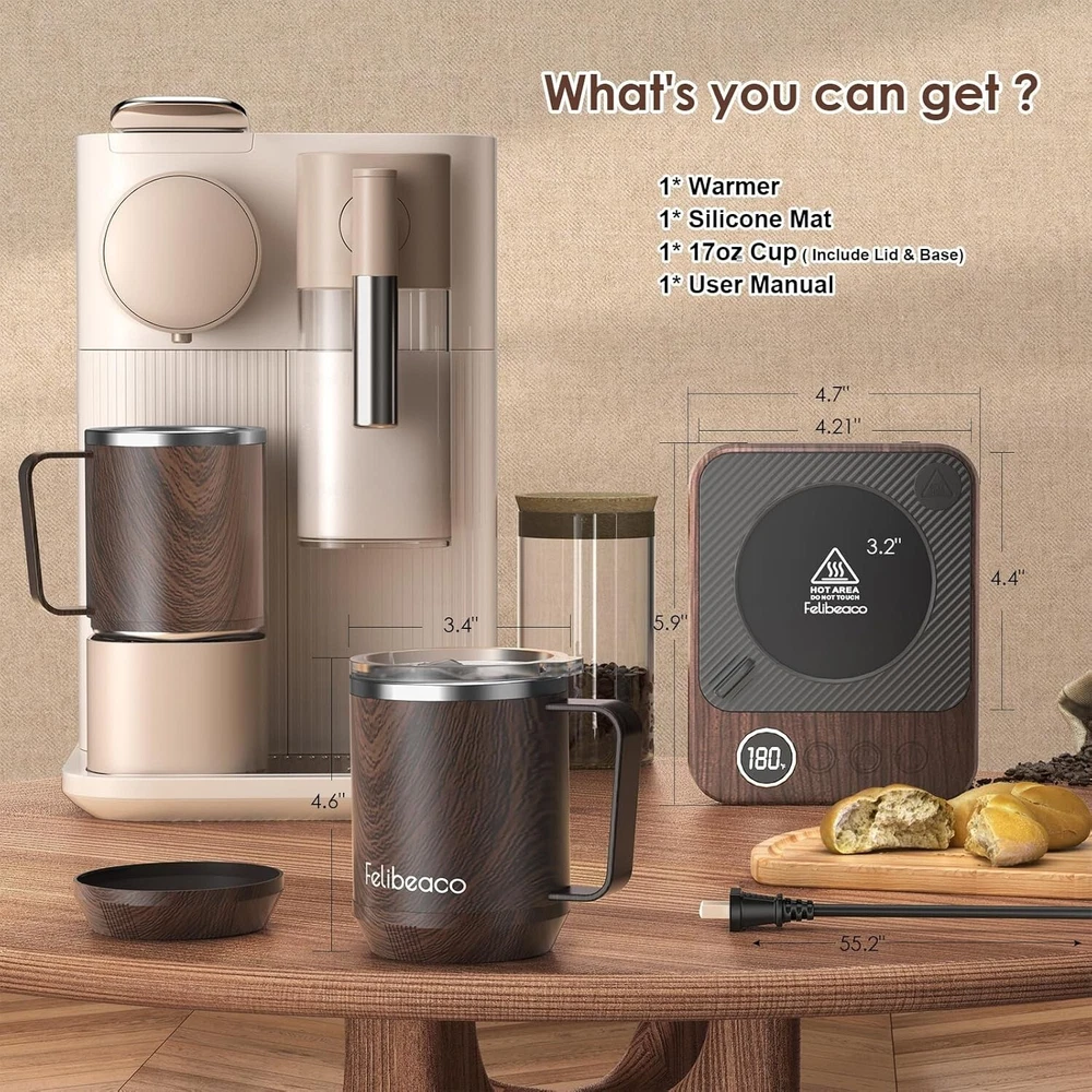 Features: Easy to Clean, Auto Shut Off, Programmable Timer, Leak Proof Lid, Detachable Base, Heat Insulation, Heating Quickly, Temperature Control Material: ABS+Aluminum Alloy Power Source: Wall Plug-In Maximum Temperature: 1.8e+2 Degrees Fahrenheit gtin13: Does Not Apply Upper Temperature Rating: 1.8e+2 Degrees Fahrenheit Wattage: 36 Watts Color: Wood Grain Finish: Matte Number in Pack: 1 Item Depth: 0.79 in Brand: Unbranded Number Of Trays: 1 Type: Coffee Mug Warmer Compatible Brand: Coffee Mug Warmer UPC: Does Not Apply Power: 36 W Voltage: 115 Volts (ac) Suitable For: Coffee Mug Warmer, Tea, Soups, Chocolate, Milk, Coffee, Candles Item Weight: 1.34 lbs Product Dimensions: 5.9 X 4.7 X 0.79 Inches Capacity: 16 fl oz