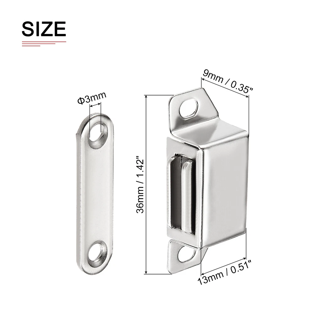 Document Product Details:Material: Stainless SteelDimension: 36x13x9mm/1.42x0.51x0.35inch (L*W*H)Package Contents:2pcs x Magnet Door CatchMaterial - Made of stainless steel, it has good strength and toughness, can withstand certain impacts and loads, has anti-corrosion and anti-high temperature properties, and can be used for a long time.Feature - The cabinet magnet latch has a good magnet force, which can keep your cabinets or drawers closed, and prevent your drawers or doors from being easily opened.Application - Magnetic door catches can be used in bedrooms, kitchens, cabinet doors, drawers, TV cabinets, bookcases, etc.Installs Steps - According to the usage or needs of the door or drawer, choose a suitable installation location, first drill a hole in the door frame, and then fix the magnetic door catch to the door frame with screws. After installation, the cabinet magnets latch will not easily loosen. 36x13mm Cabinet Magnets Latch - 2 Pack - Stainless Steel Door Catch - Silver Product Details: Material: Stainless Steel Dimension: 36x13x9mm/1.42x0.51x0.35inch (L*W*H) Package Contents:2pcs x Magnet Door Catch Material - Made of stainless steel, it has good strength and toughness, can withstand certain impacts and loads, has anti-corrosion and anti-high temperature properties, and can be used for a long time. Feature - The cabinet magnet latch has a good magnet force, which can keep your cabinets or drawers closed, and prevent your drawers or doors from being easily opened. Application - Magnetic door catches can be used in bedrooms, kitchens, cabinet doors, drawers, TV cabinets, bookcases, etc. Installs Steps - According to the usage or needs of the door or drawer, choose a suitable installation location, first drill a hole in the door frame, and then fix the magnetic door catch to the door frame with screws. After installation, the cabinet magnets latch will not easily loosen. Hot Item Payment 1.We accept eBay payment . 2.Payment must be received within 7 business days of auction closing. Shipping 1.We ship to your eBay or Paypal address. Please make sure your eBay and Paypal address is correct before you pay. 2.Items will be shipped within 1-3 business day when we received payment. 3.Delivery time depends on destination and other factors. Description Policy 36x13mm Cabinet Magnets Latch - 2 Pack - Stainless Steel Door Catch - Silver Product Details: Material: Stainless Steel Dimension: 36x13x9mm/1.42x0.51x0.35inch (L*W*H) Package Contents:2pcs x Magnet Door Catch Material - Made of stainless steel, it has good strength and toughness, can withstand certain impacts and loads, has anti-corrosion and anti-high temperature properties, and can be used for a long time. Feature - The cabinet magnet latch has a good magnet force, which can keep your cabinets or drawers closed, and prevent your drawers or doors from being easily opened. Application - Magnetic door catches can be used in bedrooms, kitchens, cabinet doors, drawers, TV cabinets, bookcases, etc. Installs Steps - According to the usage or needs of the door or drawer, choose a suitable installation location, first drill a hole in the door frame, and then fix the magnetic door catch to the door frame with screws. After installation, the cabinet magnets latch will not easily loosen. Hot Item Payment 1.We accept eBay payment . 2.Payment must be received within 7 business days of auction closing. Shipping 1.We ship to your eBay or Paypal address. Please make sure your eBay and Paypal address is correct before you pay. 2.Items will be shipped within 1-3 business day when we received payment. 3.Delivery time depends on destination and other factors.