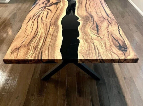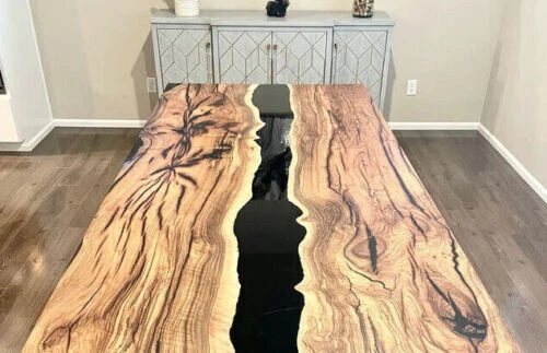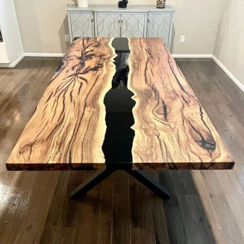 36"x24" Epoxy Wooden Table Top, Live Edge Black Epoxy Table Top, Handmade Decors