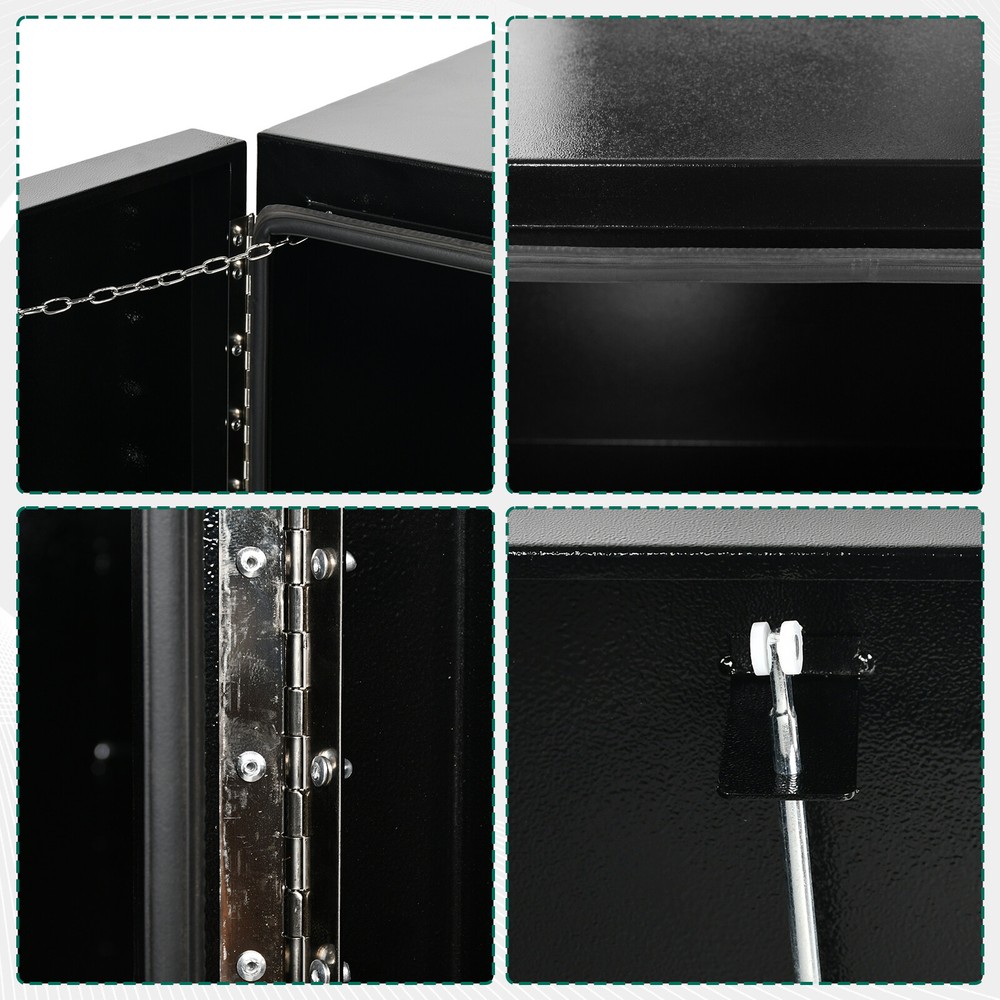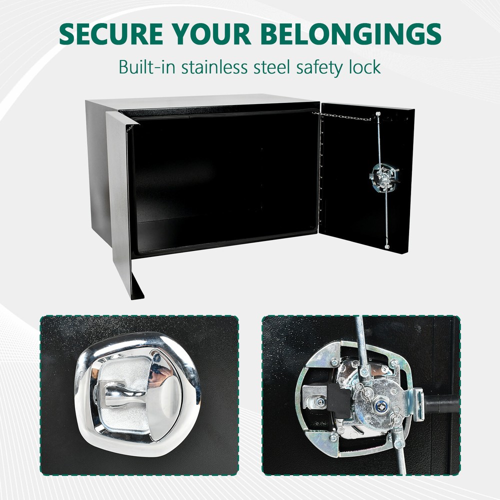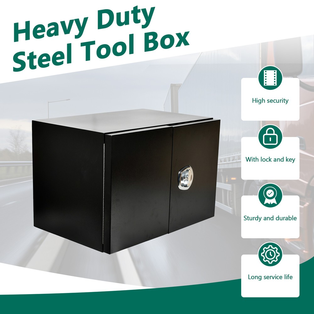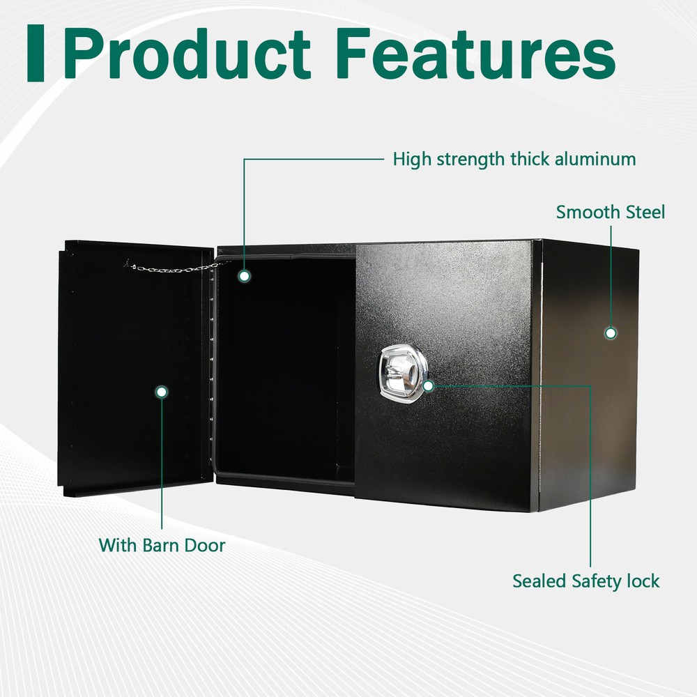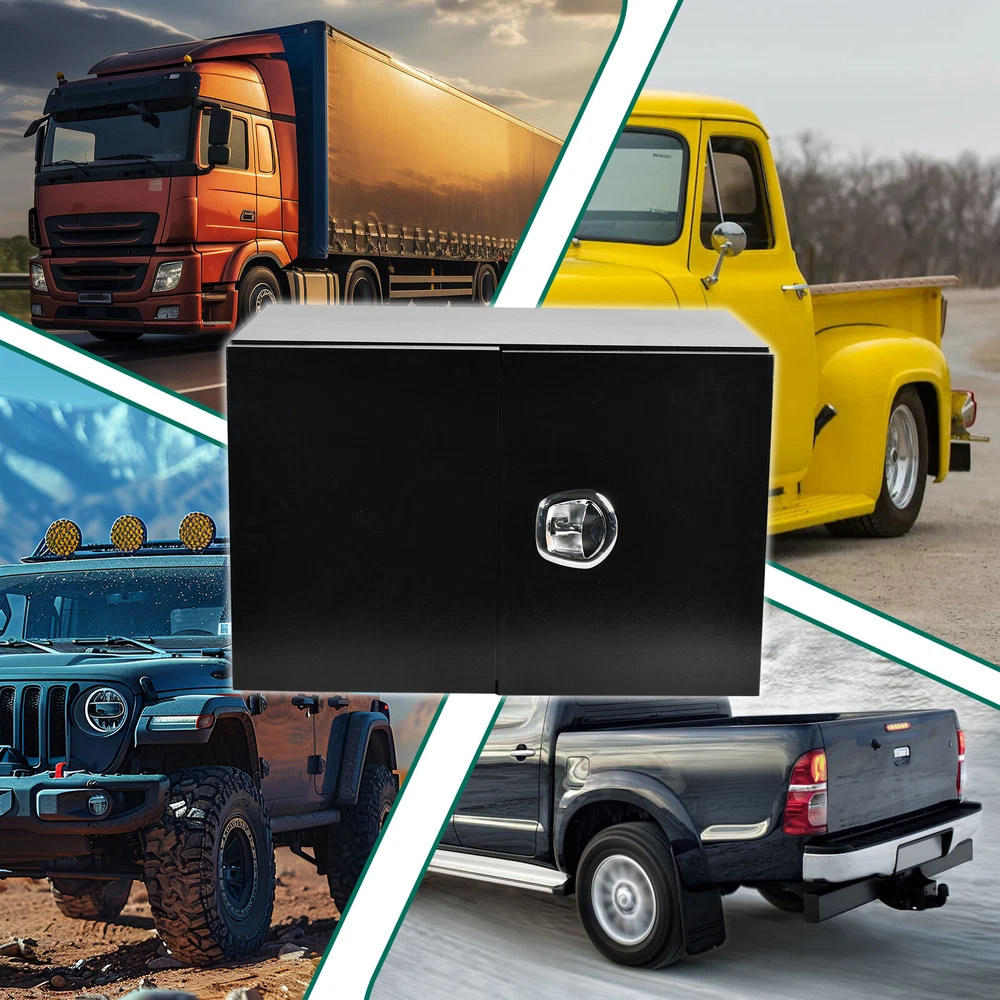 This steel truck bed toolbox is a game-changer for keeping gear organized and secure! The sturdy textured steel construction holds up against wear, while the weather-resistant seal keeps everything dry. Love the barn door design—easy access to tools, chains, or camping supplies without taking up much space. The lock adds peace of mind, and it fits perfectly under the truck bed. Super practical for work or road trips!
