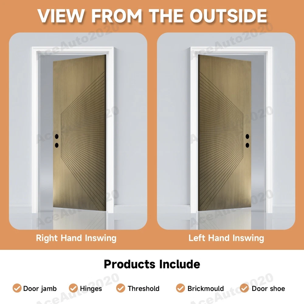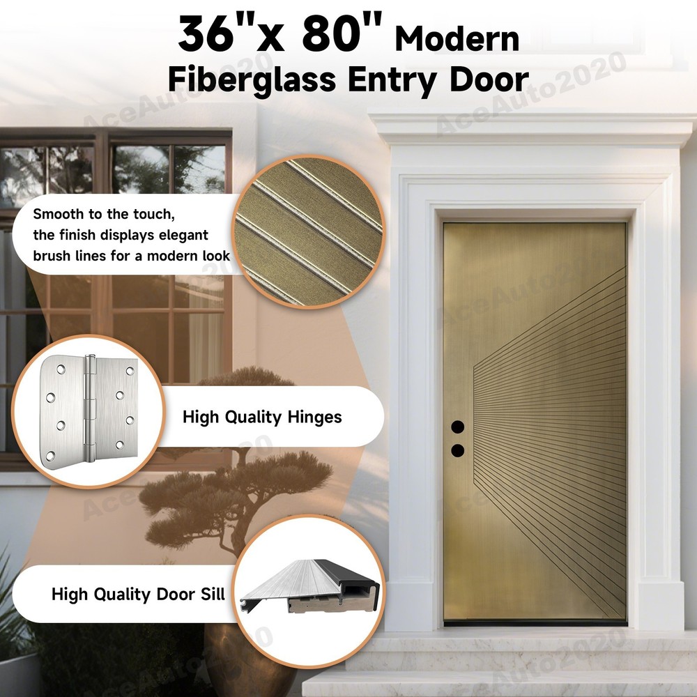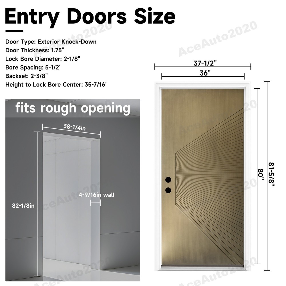 We have left-hand opening and right-hand opening doors.if you need another one,please contect us. Product Information Item Code K019-36AER Product Type Combo Item Product Name 36" x 80" Fiberglass Entrance Door with Contemporary V-Groove Flush Panel - Antique Brass Brush Finish, Right Hand Inswing, Low Maintenance, Vinyl Frame , Knock-Down Design , 4-9/16 Door Jamb Place of Origin China Main Color Antique Bronze Main Material Fiberglass Filler Fiberglass Product Style American Design,Classic,European,Luxury,Modern Use Case Garden & Outdoor Product Features : Door Specification : 36 in. x 80 in. Smooth with metallic texture entry door, 4-9/16 in. Primed jamb with brickmould, Right-hand inswing, fits rough opening of 38-1/4 in. x 82-1/8 in. Door is not for commercial use. Low-Maintenance Design : LVL Laminated Veneer Lumber Stiles. Durable ,Water-Resistant and Dent-Resistant slab and frame to withstand the rigors of everyday use. Antique Bronze Fiberglass Door : With through color process technology, the antique bronze tone is infused through the smooth metallic texture fiberglass skin, creating a metallic, luxurious look with lasting durability. KHSHOW Door offers peace of mind that your door will remain beautiful for years to come. Important Note❗❗❗ [Sill Finish]The threshold is pre-packaged and comes in either Bronze (black) or Mill (silver) finish. Color selection is not available, but both finishes are durable and visually compatible with the door set. --------------------------------------------------------------------------------------------------- Do Read before You Buy : Refund& Return -Returns are accepted within a certain period. Any problems, please feel free to contact us by eBay message first, let's figure problems out together, your email will be replied within 1 business day. -We provide a free return service, but return shipping costs will be on you in the following circumstances. 1. Changed your mind or do not need/want the item or other personal reasons. 2.Items may slightly differ from photos in terms of color and lighting differences & on different monitor’s display. 3. Manual measurement has been used, there may be some reasonable error range. 4. Choosing the wrong size , type or color causes unfitting problem. Or didn't read specifications and descriptions, causes real item is different with own imagination or expectation. 5. The buyer did not know how to install or use the item 6.Find a better price elsewhere. -Returns for free/free replacement/free parts only happen in the case of product issues/arriving broken/wrong item or missing parts. -For quality issues ,defective photos must be attached to messages/when returning. Shipment Warning : if we ship out the item and the buyer wants to cancel the order or change the address, buyer need to pay possible shipping cost. Please cancel the order or change the address before we ship out. After sales Service -we are responsible for accessories missing. Please contact us first, and attach a photo of what you've received. -we are responsible for all losses caused by product quality issues. Resend or Refund, please also attach defective photos. Feedback We do appreciate having such an opportunity to solve the problem before leaving feedback. Cause negative feedback solves NO problem, but we DO ! Hope you have a good time shopping in our store! We are honored !