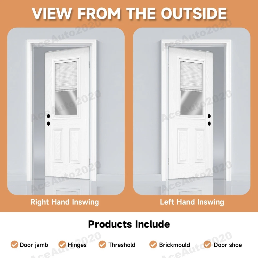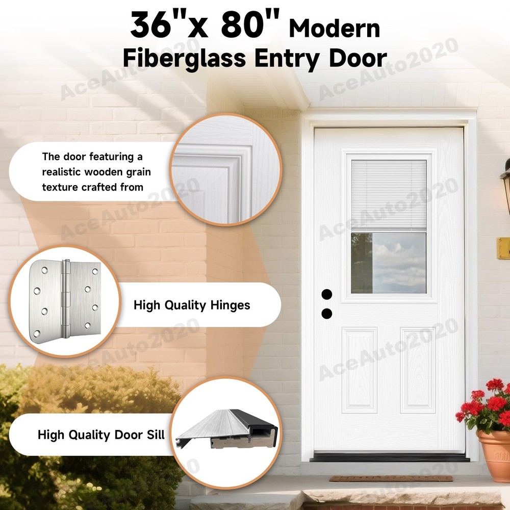 We have left-hand opening and right-hand opening doors.if you need another one,please contect us. Product Information Item Code K017-36BWR Product Type Combo Item Product Name 36x80" Right-Hand Inswing Primed Oak Grain Fiberglass Front Entry Door with Classical Mini Blind Glass and Brickmould , Vinyl Frame, 4-9/16" Jamb – Knockdown Easy Installation Place of Origin China Main Color Oak Primed Main Material Fiberglass Filler Fiberglass Product Style American Design,Classic,European,Luxury,Modern Use Case Garden & Outdoor Product Features : ² Perfect Fit & Classic Size: Sized at 36" x 80", this right-hand inswing door seamlessly fits standard door frames, ideal for entryways, porches, or main entrances. Its timeless dimensions blend functionality with elegance, enhancing your home’s curb appeal. ² Effortless Installation: Designed as a knock-down door, it breaks down into manageable sections for easy transportation and assembly. No complex tools required—simplify your DIY project or professional installation process. ² Durable Fiberglass Build: Crafted from high-quality fiberglass, this door resists warping, rotting, and cracking, ensuring long-term performance. Its low-maintenance nature makes it perfect for various climates, saving you time and money on upkeep. ² Stunning Primed Oak Grain Design: The realistic oak grain texture adds a touch of sophistication to your home’s exterior. Pre-primed and ready for painting, customize the door to match your decor style, from rustic to modern. ² Enhanced Privacy with Blind Glass: The built-in blind glass offers privacy without sacrificing natural light, allowing you to control visibility from the inside. Enjoy a secure and stylish entryway that balances functionality and aesthetic appeal. --------------------------------------------------------------------------------------------------- Do Read before You Buy : Refund& Return -Returns are accepted within a certain period. Any problems, please feel free to contact us by eBay message first, let's figure problems out together, your email will be replied within 1 business day. -We provide a free return service, but return shipping costs will be on you in the following circumstances. 1. Changed your mind or do not need/want the item or other personal reasons. 2.Items may slightly differ from photos in terms of color and lighting differences & on different monitor’s display. 3. Manual measurement has been used, there may be some reasonable error range. 4. Choosing the wrong size , type or color causes unfitting problem. Or didn't read specifications and descriptions, causes real item is different with own imagination or expectation. 5. The buyer did not know how to install or use the item 6.Find a better price elsewhere. -Returns for free/free replacement/free parts only happen in the case of product issues/arriving broken/wrong item or missing parts. -For quality issues ,defective photos must be attached to messages/when returning. Shipment Warning : if we ship out the item and the buyer wants to cancel the order or change the address, buyer need to pay possible shipping cost. Please cancel the order or change the address before we ship out. After sales Service -we are responsible for accessories missing. Please contact us first, and attach a photo of what you've received. -we are responsible for all losses caused by product quality issues. Resend or Refund, please also attach defective photos. Feedback We do appreciate having such an opportunity to solve the problem before leaving feedback. Cause negative feedback solves NO problem, but we DO ! Hope you have a good time shopping in our store! We are honored !