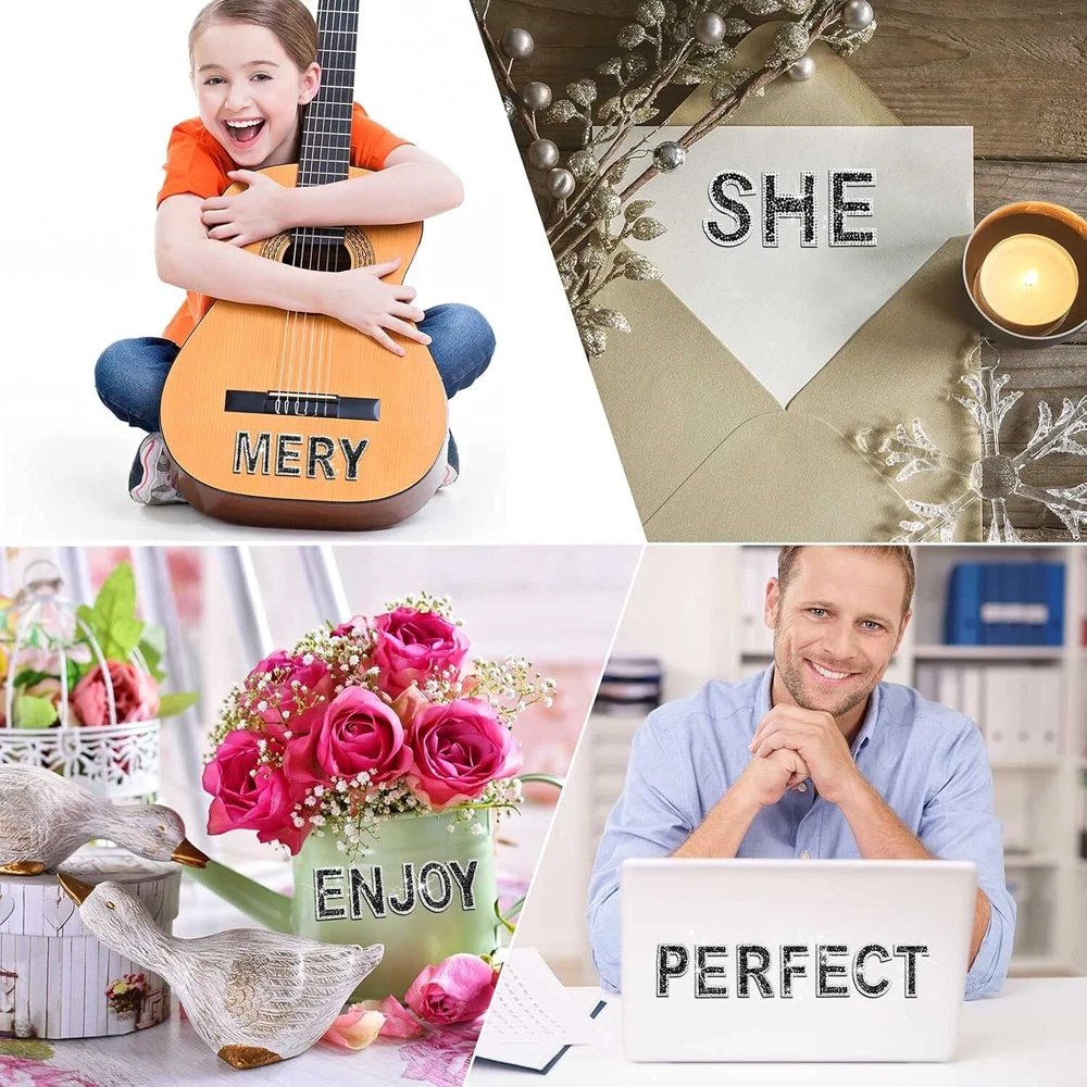 Item Form: Sheet Special Feature: Self Adhesive Theme: Numbers & Letters Cartoon Character: Rhinestone Letters Shape Irregular: Unit Count 37 Count UPC: 711181473049 Number of Items: 37 Brand: Does not apply Type: Glitter Finish Type: Polished Reusability: Single Use Embellishment: Glitter Item Weight: 6.9 ounces Package Dimensions: 12.64 x 9.69 x 0.47 inches Pattern: Letter Print Size: 2.56 Inch Number of Pieces: 37 Indoor/Outdoor Usage: Indoor Color: Black, White Style: Custom gtin13: 711181473049 Water Resistance Level: Not Water Resistant Recommended Uses For Product: Laptop, Scrapbook, Car Country of Origin: China Age Range (Description): Adult Surface Recommendation Furniture: Material Paper