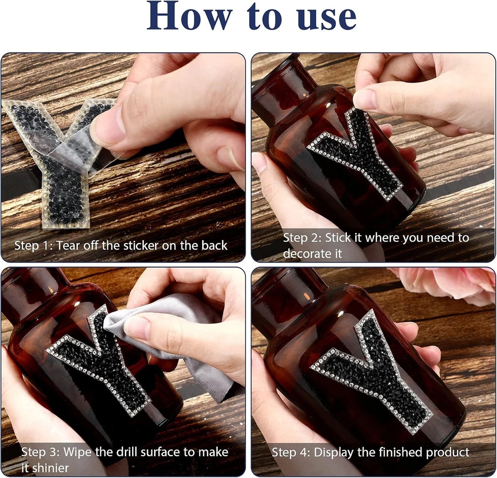 37 Pieces Rhinestone Letter Stickers Large Glitter Alphabet Crystal Number Self What you get: package comes with 37 pieces rhinestone alphanumeric symbol stickers, including numbers 0 to 9, letters A to Z and 1 symbol, each measures approx. 2.56 inches/ 6.5 cm in height, you can mix and match different letters or numbers together, make into names, dates and phrases to decorate your clothes or other crafts Exquisite Craftsmanship: these self-adhesive letter number and symbol stickers use high-temperature technology, with characteristics of high temperature resistance and stable and durable adhesion; Each sticker is combined with self-adhesive paper made of quality drill bits, which is easy to peel off and can be easily attached to any smooth surface; There will be a smell of glue when opened, but don't worry, it is non toxic and the smell will dissipate after a period of use Glitter decorative effect: each sticker is made of 2 kinds of rhinestones, the letters are made of resin rhinestones, and the border is wrapped with crystal rhinestones, both are shiny and bright, can add aglitter decorative effect for your crafts, make you stand out from the crowd and easily attract people's attention Self-adhesive design: diamond crystal alphabet letter sticker comes with a self-adhesive design on the back, you just need to choose the letter or number you like, put it on the smooth surface to decorate, and then press to make it adhered to the surface securely (do not paste it in the place near the water for 48 hours), convenient operation makes it easy for you to decorate your handicrafts Places to stick: these self-adhesive stickers are suitable for a myriad of applications, you can paste them on your suitcases, laptops, scrapbooks, books, gifts, hats, furniture, wedding ornaments, clothing, as handicraft ornaments, car decor, room decor, Valentine's Day decor, etc., to make your belongings personalized and you can also use them for identifying your belongings Shipping We offer FREE shipping on all orders! We ship within Three business days of payment, usually sooner. Local pickups and combined shipping options are not provided at this time. Return You can return a product for up to 30 days from the date you purchased it. Any product you return must be in the same condition you received it and in the original packaging. Please keep the receipt. Payment We accept payment by any of the following methods: PayPal Please pay as soon as possible after winning an auction, as that will allow us to post your item to you sooner! Feedback Customer satisfaction is very important to us. If you have any problem with your order, please contact us and we will do our best to make you satisfied. Contact Us If you have any queries, please contact us via ebay. We usually respond within 24 hours on weekdays. Please visit our eBay store to check out other items for sale! Thank you for shopping at our store.