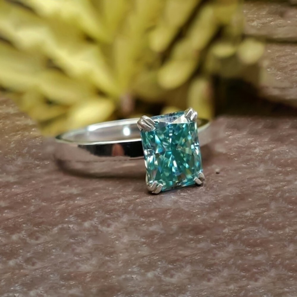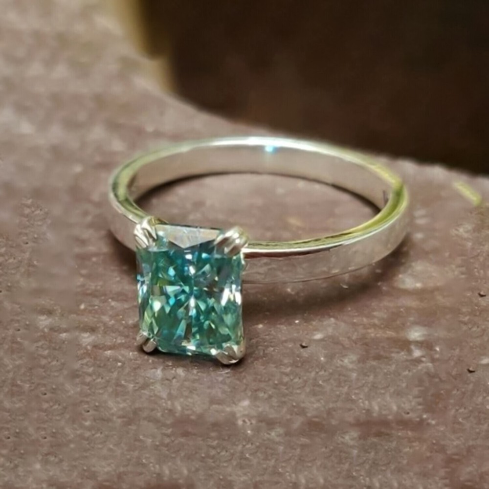 925 Sterling Silver Rhodium Plated Emerald Ring Size 6