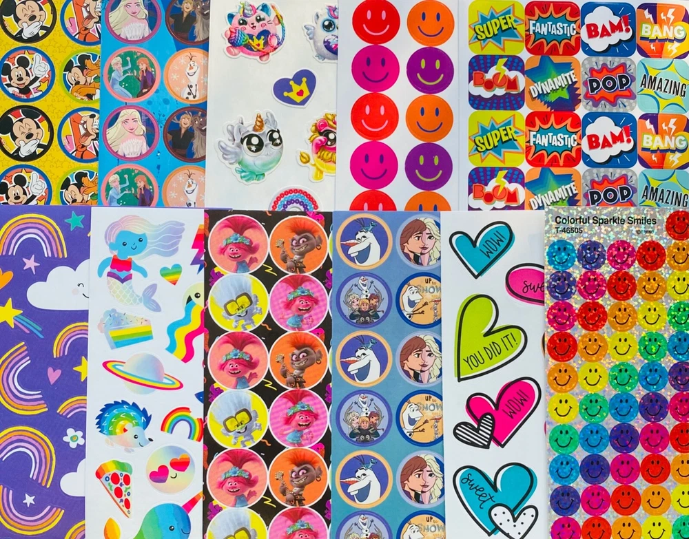 LIMITED EDITION! Mixed Sticker Lot | The Ultimate Kit | Qty. 375+ Stickers | High Quality Only! Fun Assortment of Puffy, Scrapbook, Cartoons, Bubble, Pop Up Stickers Packs For Everyone! You will receive 17+ Sticker Sheets of beautiful colorful assortment. The Pack will include 375+ Stickers overall! I have included a large variety of pictures of the assortment available. The pictures give you an idea of what you will be receiving. Please Note: You will not receive everything pictured. Please contact me with any special requests. This HUGE Variety of fun designs stickers can be used in parties, classroom, school and home, good for reward for students, potty training, adding inside a birthday card, game activities, entertaining toddlers, etc. Perfect Gifts for Kids & all Occasions: Can be given as a gift for kids, girls, boys, toddlers, teens, students, friends, and classmates, they will love it!