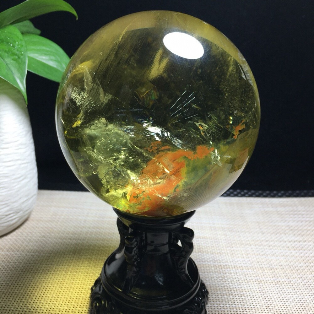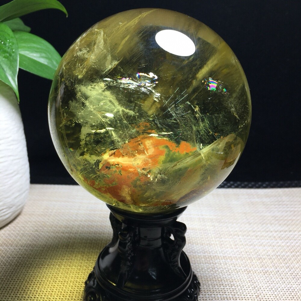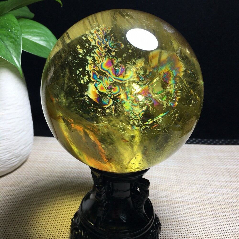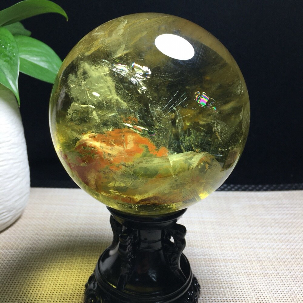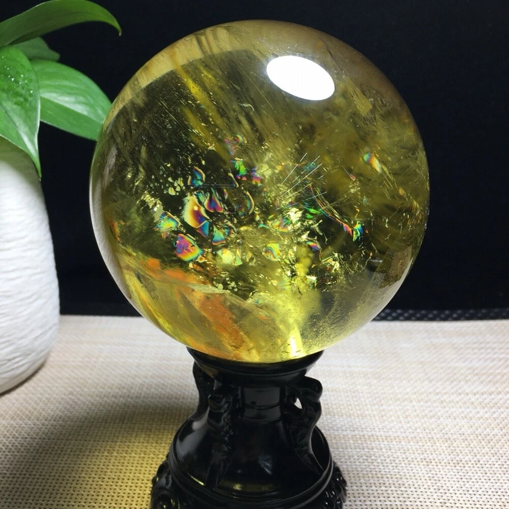 3.7LB Natural Citrine Quartz Sphere Rainbow Crystal Ball 109mm for Reiki Healing and Energy Work