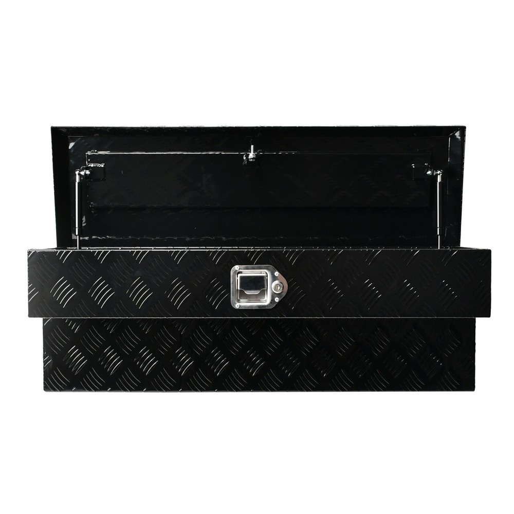 Fitment: For Trucks, RV, ATV, Garage storage, Trailer, Job site, Flatbed Overall Dimensions: 37"(L) x 12"(W) x 13"(H) Brand: fastracingo UPC: Does not apply Manufacturer Part Number: Does Not Apply Tread: 5 Bar Tread Materials: Aluminum gtin13: Does not apply Type: Truck Tool Box Color: Black Position: Underbody Thickness: 1.3mm