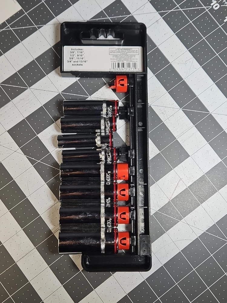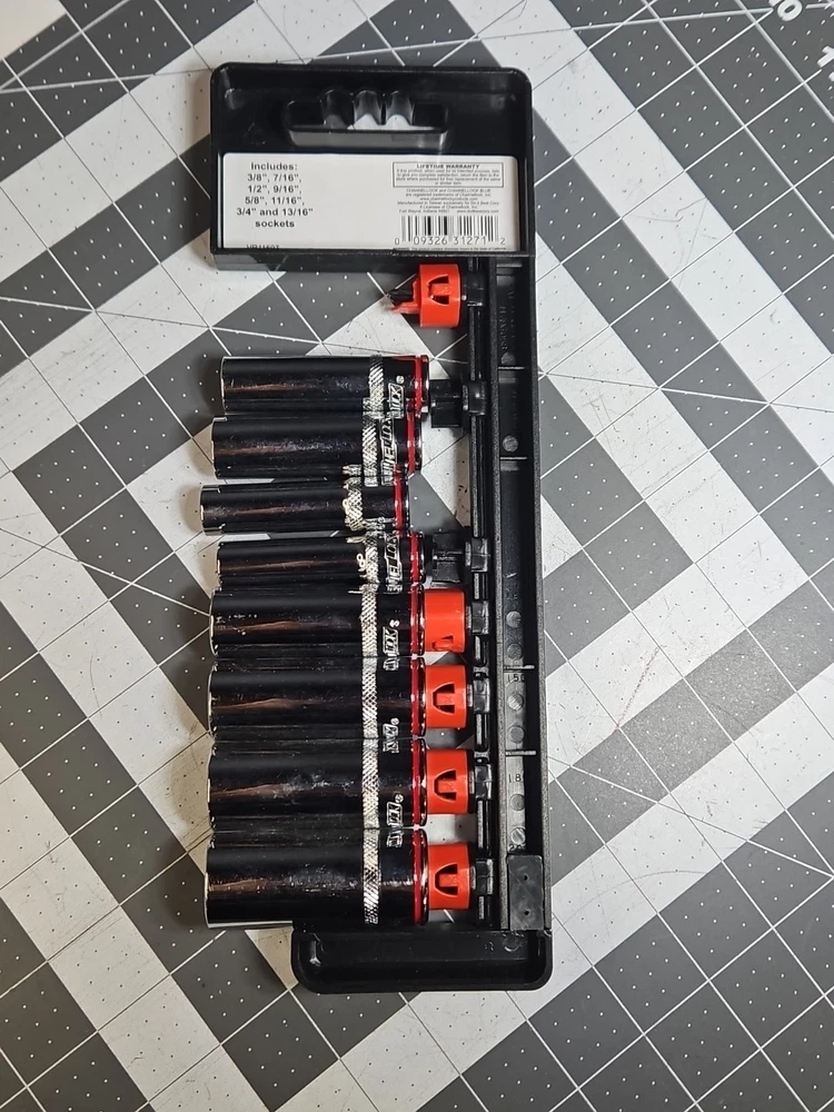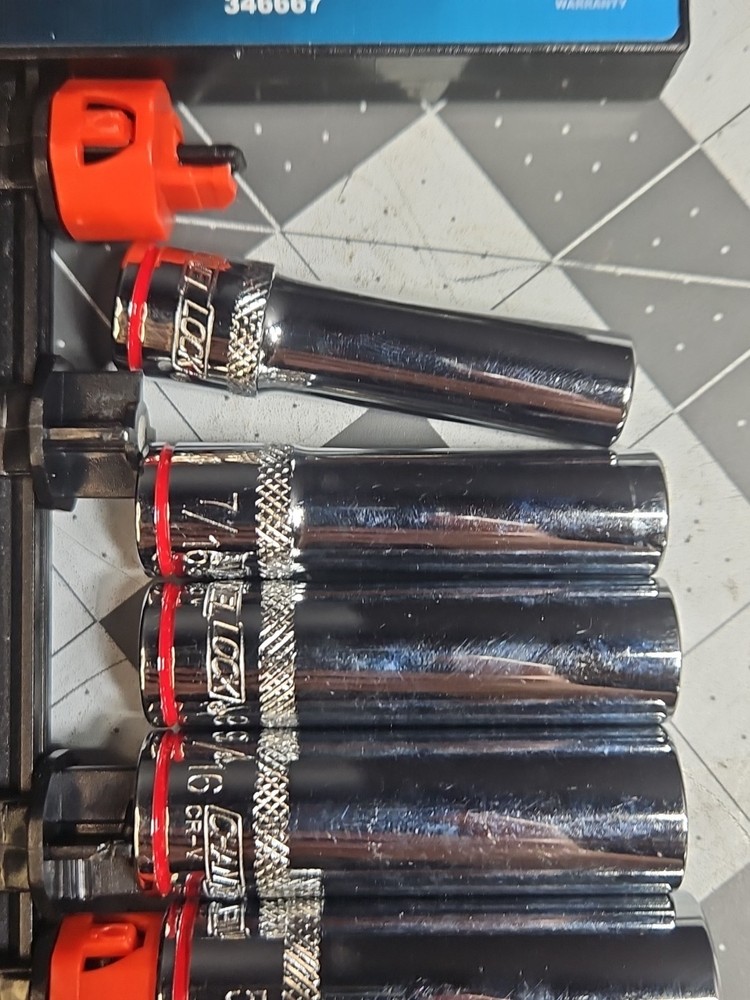 3/8" Drive Deep SAE Channel Lock Socket Set 8pc #346667 GUC 3/8" To 13/16" 6pt Product will be shipped timely and packaged with care. Offers are encouraged. Please feel free to reach out with questions. Please see pictures. Thank you. Good used condition. Light wear from age and use. Markings from age and use. See pictures This set is sold as seen. Gently used. The original manufactured holder has broken pegs and 4 of the 8 sockets do not sit on holder. This product is a 3/8" drive deep SAE Channel Lock Socket Set with 8 pieces. The sockets range in size from 3/8" to 13/16" and have a 6-point configuration. The set includes sockets only, and the brand is Channellock. The manufacturer part number is 346667. This set is suitable for use in the automotive industry and is categorized under eBay Motors, Automotive Tools & Supplies, Hand Tools, and Sockets & Socket Sets. MC1
