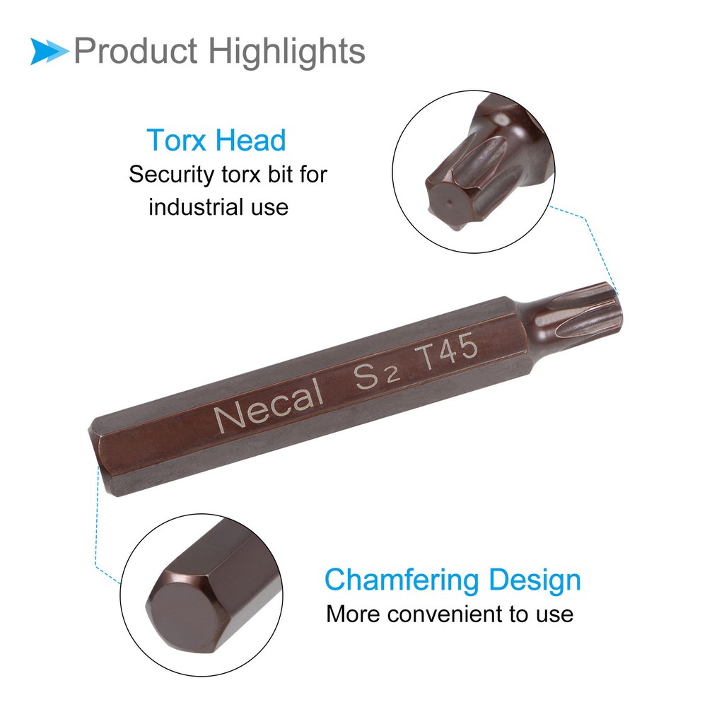 Document Attributes:* Shank Size: 10mm / 3/8"* Total Length: 75mm / 3"* Bit Type: T45* Material: S2 SteelWhat Is Included:* 1 Piece x Torx Screwdriver BitApplications & Features:--- Those bits fit for electric screwdrivers, hand screwdrivers, electric drills, air drills, air batches and 3/8" (10mm) screwdriver sets.--- The torx screwdriver bits are made of S2 steel, which ensures high hardness, durability and wear resistance.--- These screwdriver bits are magnetic, which can firmly absorb the screw to prevent it from falling off.--- The star head bits are easy to install on the screwdriver handle with double ear on the sides of the bit shank.Useful Tips:--- Please apply appropriate force. Excessive force may cause the bit to slip, while insufficient force may not effectively tighten or remove the screw. Torx Screwdriver Bits 3/8" Hex Shank 75mm Long T45 Magnetic Screw Driver Bit Attributes: * Shank Size: 10mm / 3/8" * Total Length: 75mm / 3" * Bit Type: T45 * Material: S2 Steel What Is Included: * 1 Piece x Torx Screwdriver Bit Applications & Features: --- Those bits fit for electric screwdrivers, hand screwdrivers, electric drills, air drills, air batches and 3/8" (10mm) screwdriver sets. --- The torx screwdriver bits are made of S2 steel, which ensures high hardness, durability and wear resistance. --- These screwdriver bits are magnetic, which can firmly absorb the screw to prevent it from falling off. --- The star head bits are easy to install on the screwdriver handle with double ear on the sides of the bit shank. Useful Tips: --- Please apply appropriate force. Excessive force may cause the bit to slip, while insufficient force may not effectively tighten or remove the screw. Hot Item Payment 1.We accept eBay payment . 2.Payment must be received within 7 business days of auction closing. Shipping 1.We ship to your eBay or Paypal address. Please make sure your eBay and Paypal address is correct before you pay. 2.Items will be shipped within 1-3 business day when we received payment. 3.Delivery time depends on destination and other factors. Description Policy Torx Screwdriver Bits 3/8" Hex Shank 75mm Long T45 Magnetic Screw Driver Bit Attributes: * Shank Size: 10mm / 3/8" * Total Length: 75mm / 3" * Bit Type: T45 * Material: S2 Steel What Is Included: * 1 Piece x Torx Screwdriver Bit Applications & Features: --- Those bits fit for electric screwdrivers, hand screwdrivers, electric drills, air drills, air batches and 3/8" (10mm) screwdriver sets. --- The torx screwdriver bits are made of S2 steel, which ensures high hardness, durability and wear resistance. --- These screwdriver bits are magnetic, which can firmly absorb the screw to prevent it from falling off. --- The star head bits are easy to install on the screwdriver handle with double ear on the sides of the bit shank. Useful Tips: --- Please apply appropriate force. Excessive force may cause the bit to slip, while insufficient force may not effectively tighten or remove the screw. Hot Item Payment 1.We accept eBay payment . 2.Payment must be received within 7 business days of auction closing. Shipping 1.We ship to your eBay or Paypal address. Please make sure your eBay and Paypal address is correct before you pay. 2.Items will be shipped within 1-3 business day when we received payment. 3.Delivery time depends on destination and other factors.