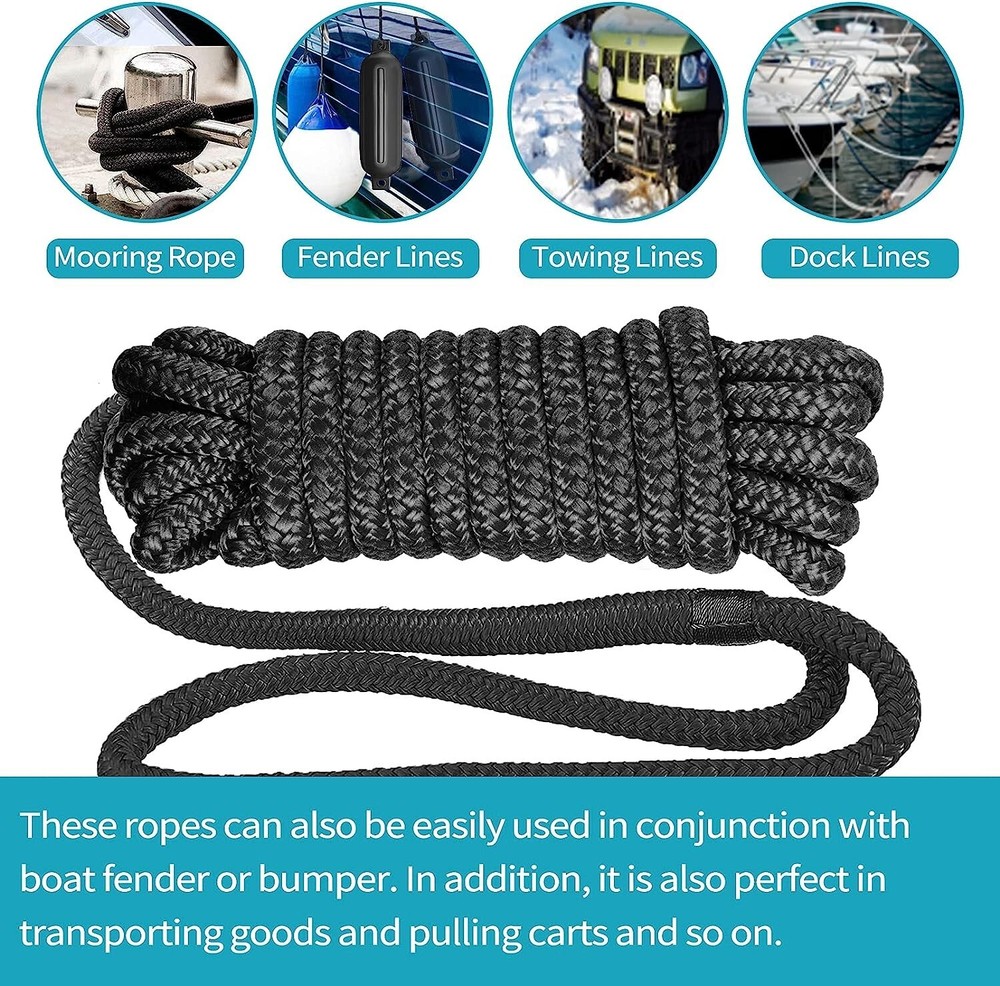 Best seller Great service Fast shipping 24h Satisfaction guarantee about us feedback add us contact Double Braided Rope Nylon Fender 3/8"x 15Ft Lines With 12" Eyelet, 4 Pack- Black Popular gallery description Fast Local Shipping from the United Sates The fender line is made nylon of high-quality materials and is designed with double braided nylon dock ropes. boat fender rope connected to boat fender bumpers. Our ocean-grade boat rope resists kinking and rotation under heavy loads, providing excellent shock absorption to protect your boat's surface. The strong and durable black fender rope is soft to the touch, with professional whipping at the eyelet throat and heat treatment at the end to prevent fraying. You'll receive a 4-pack of 3/8 inch x 15 feet fender lines, each with a 12-inch eyelet for easy splicing to a 25-foot boat. Using these boat fender lines is a breeze thanks to the built-in loop on one end, eliminating the need for knot tying and allowing for easy adjustments. Features : Made from high-quality nylon material Double braided nylon dock ropes for secure connection to boat fender bumpers Ocean-grade boat rope that does not kink or rotate under heavy loads Provides excellent shock absorption to protect the boat's surface Soft to the touch and resistant to fraying or unraveling Heat-treated at the end to prevent fraying Each line measures 3/8 inch x 15 feet Features a 12-inch eyelet for easy splicing to a 25-foot boat Built-in loop on one end eliminates the need for knot tying Easy to adjust for a secure fit to the boat's fender Specification : Size: 3/8" x 15 Ft Material: Nylon Color: 4PK-Black Brand: Sailortenx Vehicle Service Type: Watercraft Load Capacity: 820 pounds Fastener Material: Stainless Steel Number of Pieces: 4 Product Dimensions: 180"L x 0.38"W Manufacturer: Sailortenx Item Weight: 3.24 pounds Manufacturer Part Number: DL001-4PK-Black Package Included : Boat Fender Lines - 4 Pack payment returns Pay by Paypal wallet or Payment Card We meet all the standards to provide you with fully secure payment via Paypal. All your order payments are protected by Paypal Buyer Purchase Protection. You can pay by using the paypal wallet or the payment card. Orders will be processed instantly and dispatched in same day normally, so we do NOT accept any Email/Message note after you place orders. 30-day money-back guarantee If you are not completely satisfied with the product please do not hesitate to contact us. We will do everything to solve any problem. If you are still unsatisfied, we offer a 30-day money-back guarantee. Please note : The returned items must be in the original packaging and in the same condition as you received it. Refunds are issued to the payment method used at the time of purchase. If you placed your order from our shop and it was faulty or you received the wrong product, please return it to us within 30 days and we will issue you a full refund or offer a replacement. All returns are inspected. Your satisfaction is our priority. other auctions 3 Piece Cast Iron Skillet Set SEE Cordless Nose & Ear Men's Hair Trimmer SEE Silverware Draw Tray Organizer SEE Aluminum Cell Phone Tablet Stand Holder SEE feedback 1200+ positive comments deanmdavis35ju : A plus plus very good eBayer thank you! mopar55 : Everything as advertised....Fast shipping....Quality product..... wildirish78 : Great seller! fast shipping. Well packaged A+ trooper1paul : thank u for getting it to me fast i enjoy them a lot SEE ALL FEEDBACK delivery why us We will make every effort to ensure that our cooperation has been successful, for you to be satisfied with our products and services. We are here to help you! category Kitchen, Dining & Bar Supplies Bicycle Stands & Storage About Us We are company founded in 2018. Headquarters is based in the USA. Our mission is to provide high-quality products and the best price as possible. We do everything to make every customer happy, this is our priority. We offer the best prices around on high quality products. Our E-store includes home decors, home improvement, garden items and more. Do you have questions? Feel free to contact us! Benefits Only high product quality Best prices Shipping in 24 hours 30-day money-back guarantee useful links about us feedback add us contact © TAREBLE_4